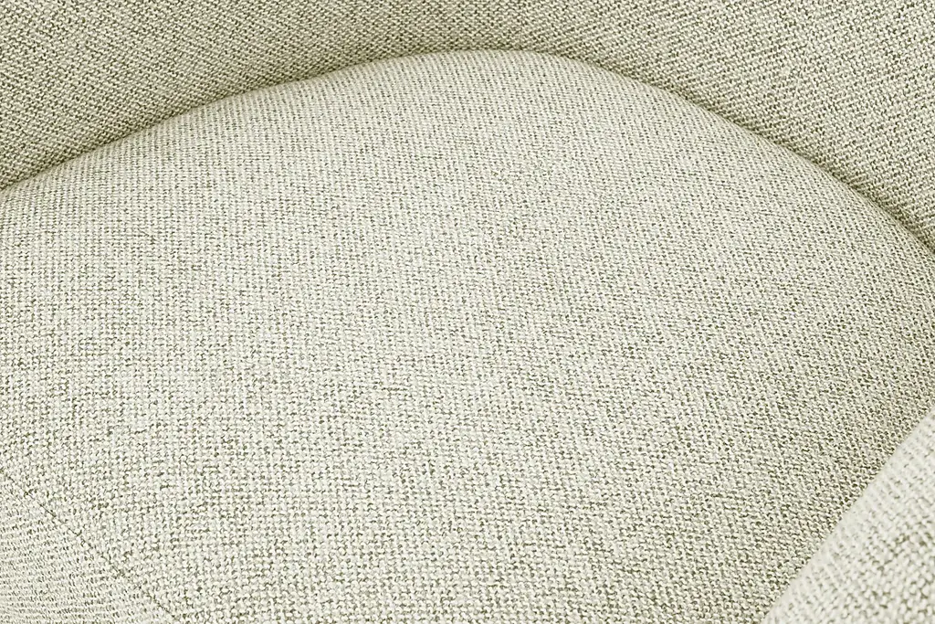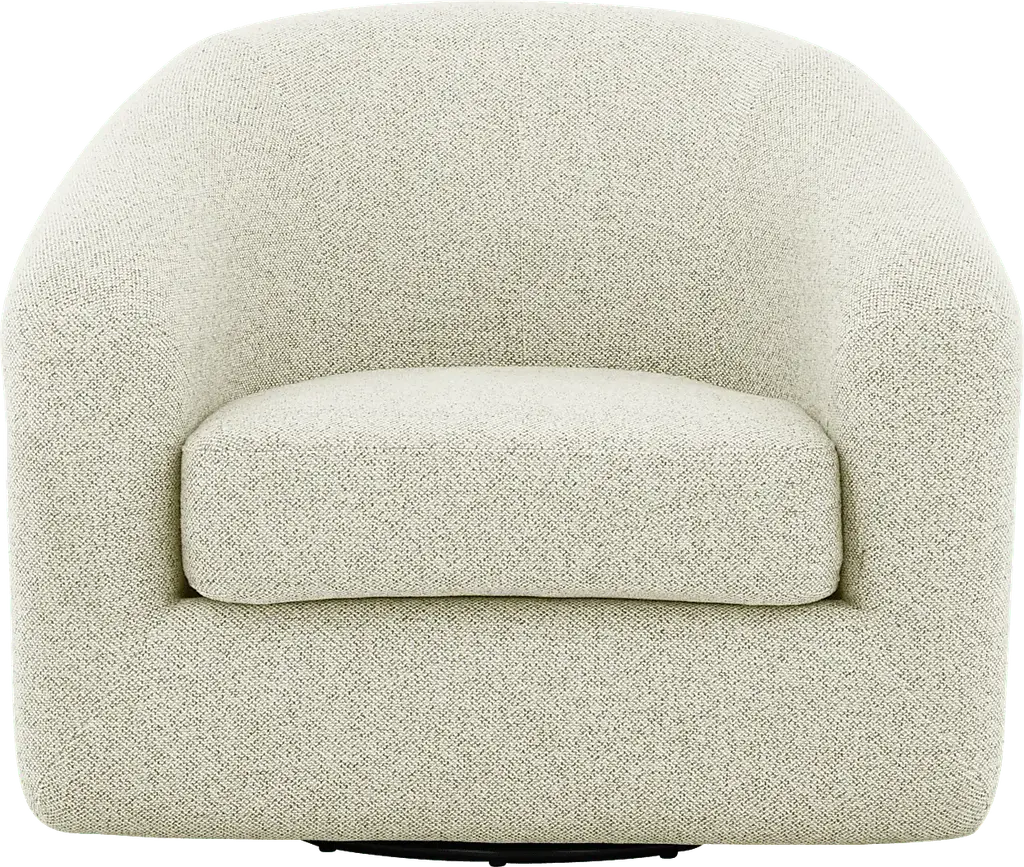 Time slows and relaxation arrives like a gentle wave with the serenity of welcoming sophistication in the Cecilia swivel chair's sculptural curves and versatile style. This transitional piece is wrapped in beige woven fabric for a visually rich texture and inviting feel. The curved barrel back and soft seat cushion deliver cradle-like comfort with every sitting. Its 360-degree swivel base provides smooth and effortless movement, keeping you engaged in conversations from any angle. Upholstery: 100% polyester.