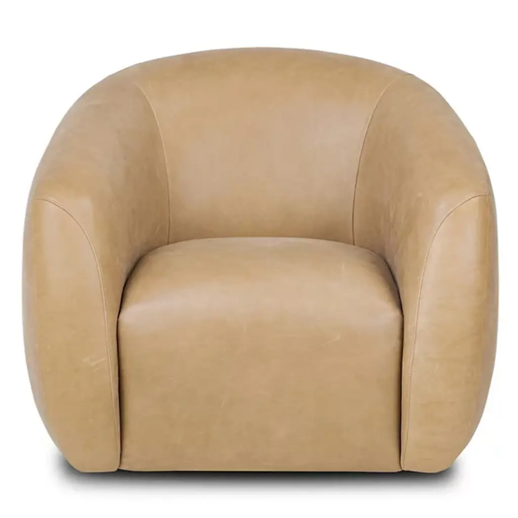 The Channing Swivel Chair from Four Hands infuses European design principles into a thoroughly modern seating solution. The engineered hardwood and acacia plywood construction provides a robust foundation for the polyester-acrylic blend upholstery. Its balanced cushioning system combines polyester fiber batting with polyurethane foam pads, while the swivel base adds functionality. The heathered texture of the fabric creates subtle depth variations across the surface.