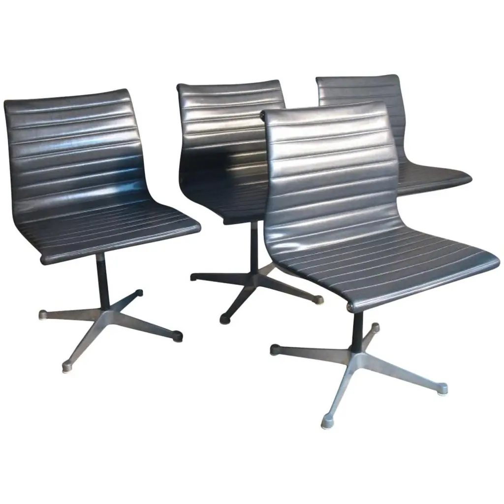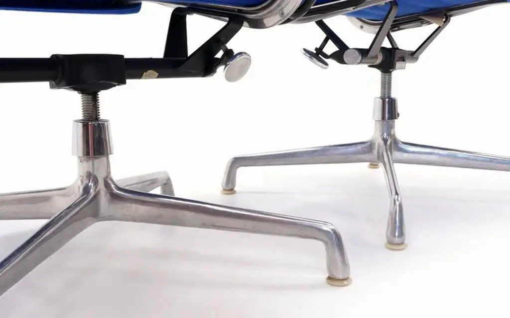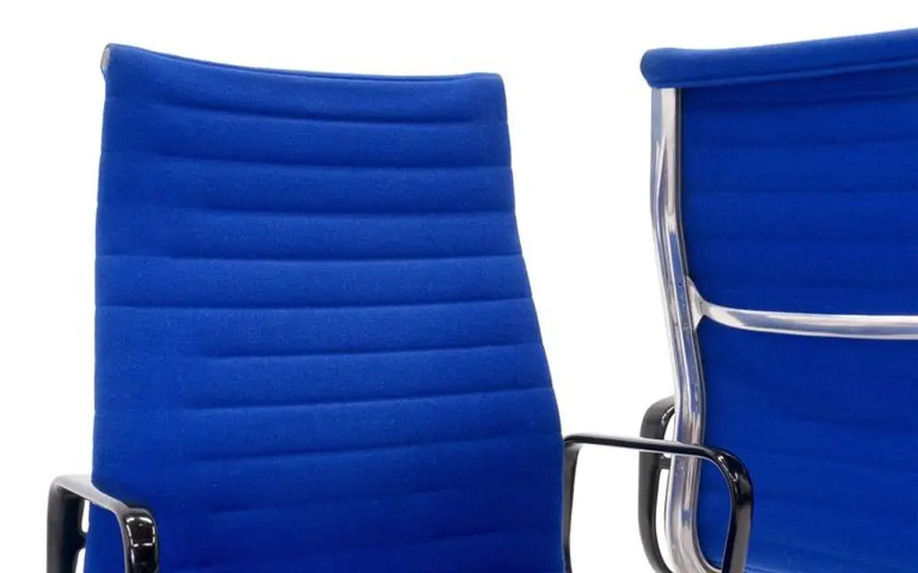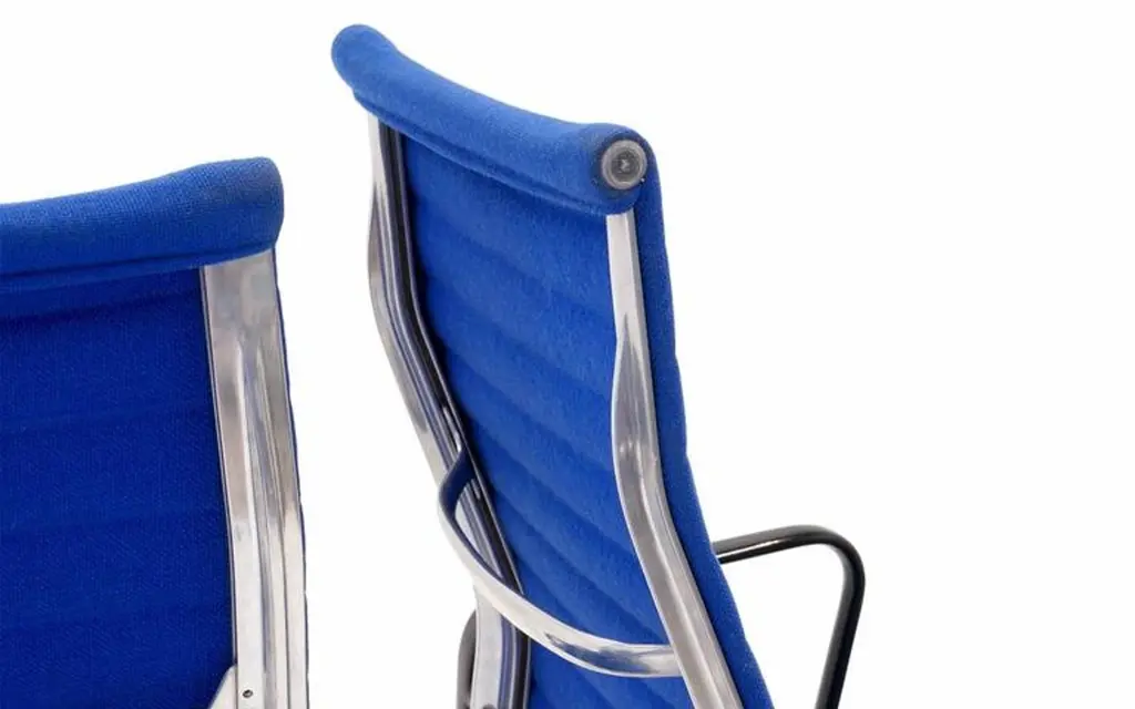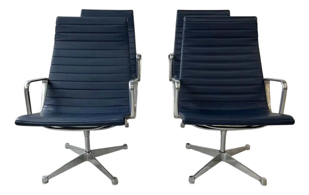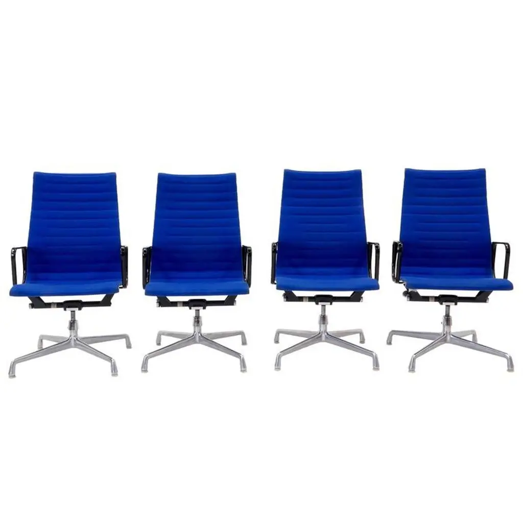 Charles And Ray Eames High Back Aluminum Group Chairs In Original Blue Fabric