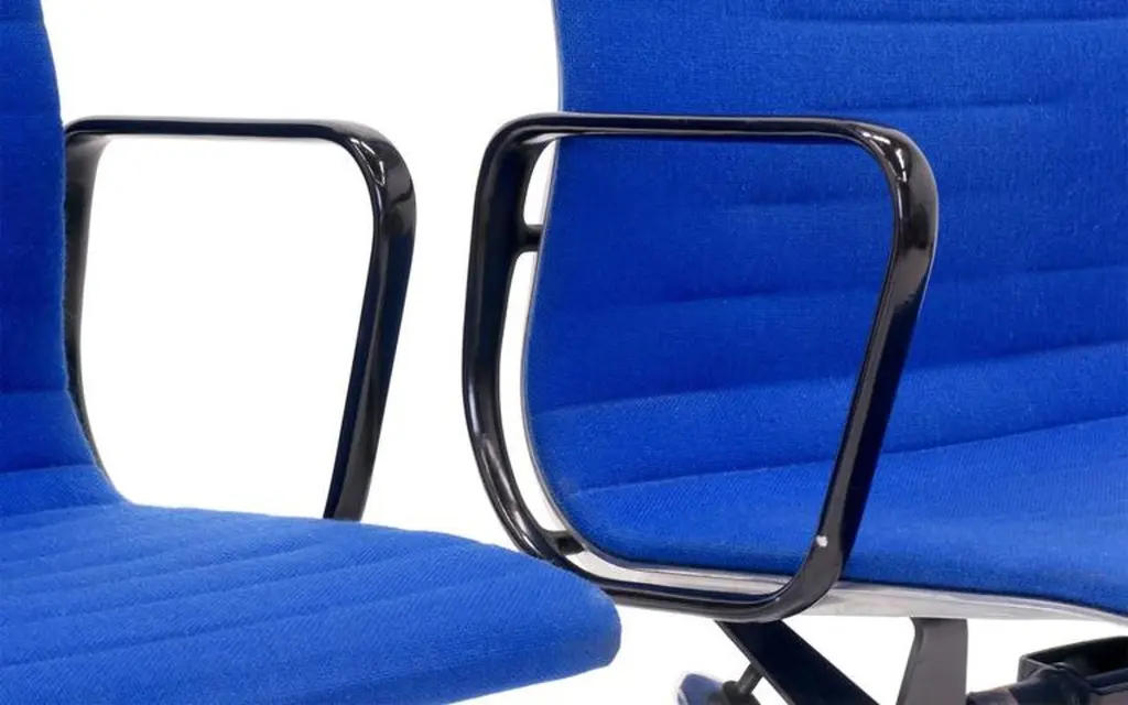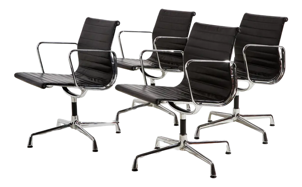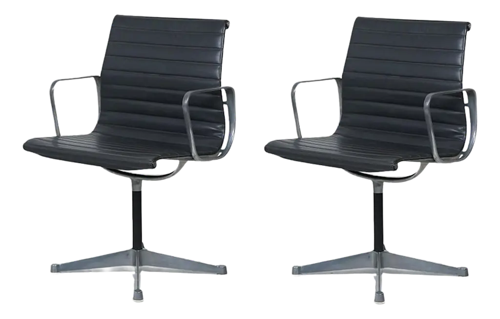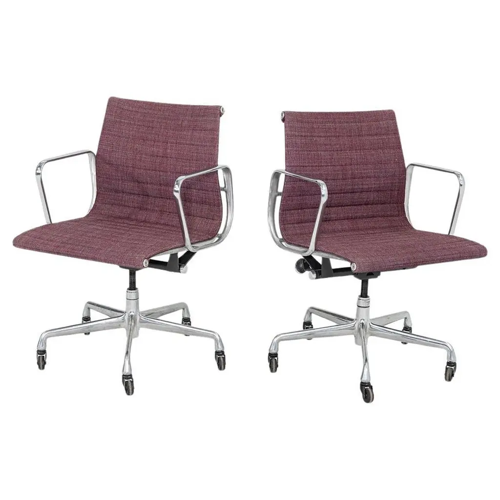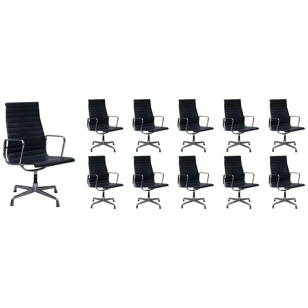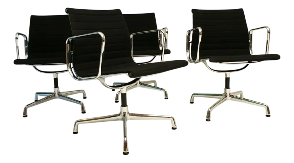 Charles And Ray Eames High Back Aluminum Group Chairs In Original Blue Fabric
