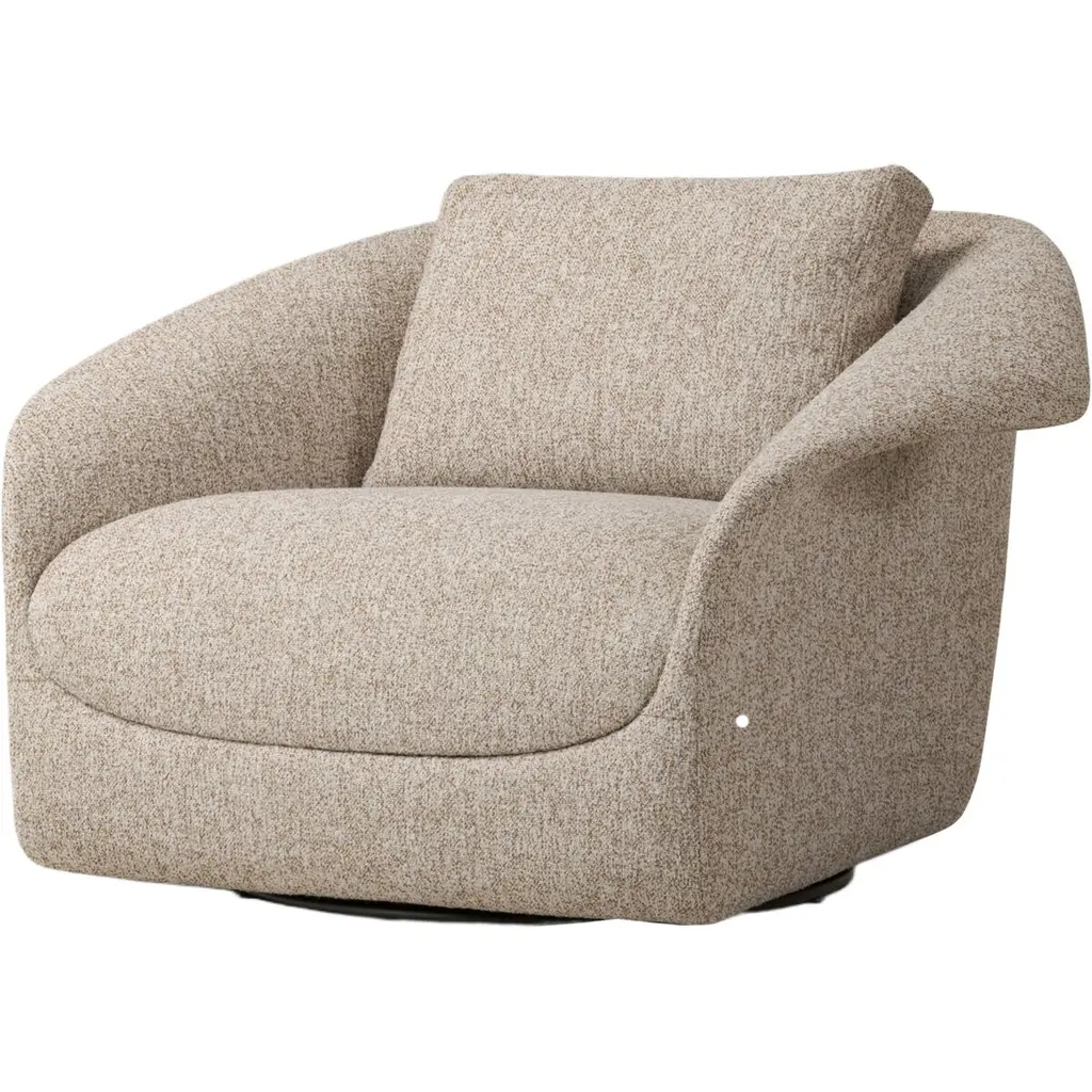 Sink into the embrace of the Charli Swivel Chair, where form meets function in the most inviting way. Available in your choice of two soft boucle fabrics or a textured basketweave chenille, this chair offers a cozy, elevated feel that is as durable as it is beautiful. Its contract-grade fabrics are easy to clean, making it a perfect fit for busy spaces. With bold tubular arms and sensual curves, the Charli Swivel Chair invites you to spin into style and comfort; every moment, effortlessly chic.
