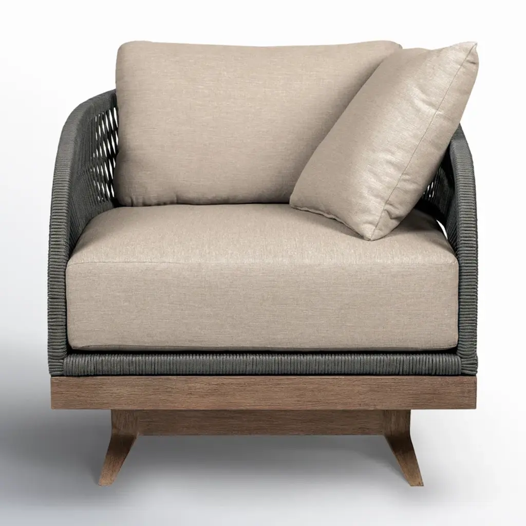 Meet the Hareton swivel outdoor patio chair – a harmonious blend of modern design and natural beauty, meticulously crafted to redefine your outdoor lounging experience. This outdoor swivel chair effortlessly combines the organic charm of weathered eucalyptus wood with the contemporary appeal of gray rope accents and olefin cushions, creating a striking piece of outdoor furniture that seamlessly blends aesthetics with durability. The weathered eucalyptus wood frame of the Hareton outdoor patio chair introduces a touch of rustic elegance to your patio, infusing your outdoor space with character and warmth. Each knot and grain tells a story, creating an atmosphere of timeless charm that complements various outdoor settings. Designed to endure the elements, this chair boasts water-resistant and UV-resistant properties, ensuring it remains resilient and stylish in the face of changing weather conditions. Whether bathed in sunlight or facing unexpected rain, the Hareton swivel chair stands as a steadfast symbol of modern outdoor luxury. The gray rope accents add a contemporary flair to the design, creating a visually appealing contrast with the weathered eucalyptus wood. Paired with plush olefin cushions in a neutral tone, the Hareton swivel chair offers a perfect fusion of comfort and style. The water-resistant capabilities and easily removable zipper-closure cushion covers make maintenance effortless, allowing you to enjoy the Hareton swivel outdoor patio chair with ease. Elevate your outdoor aesthetic with the Hareton swivel outdoor patio chair in weathered eucalyptus wood and taupe upholstery.
