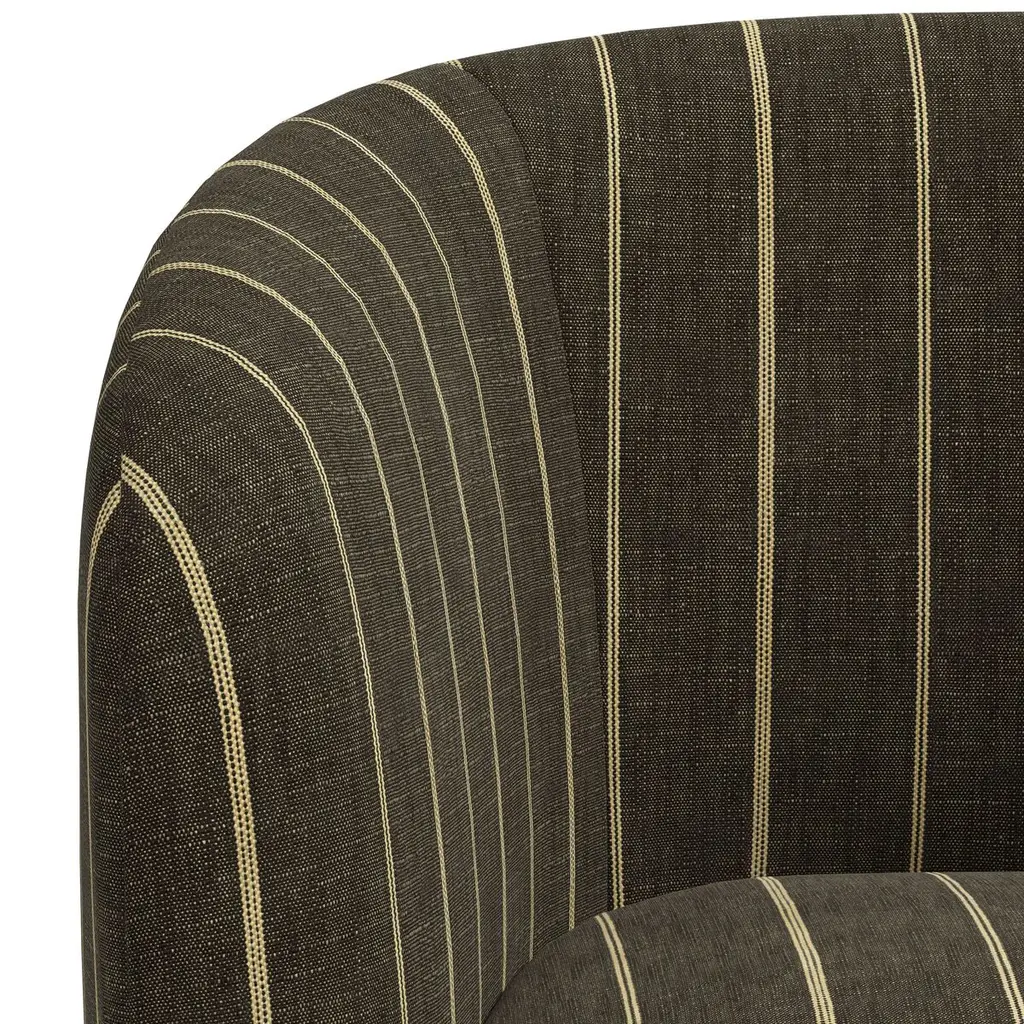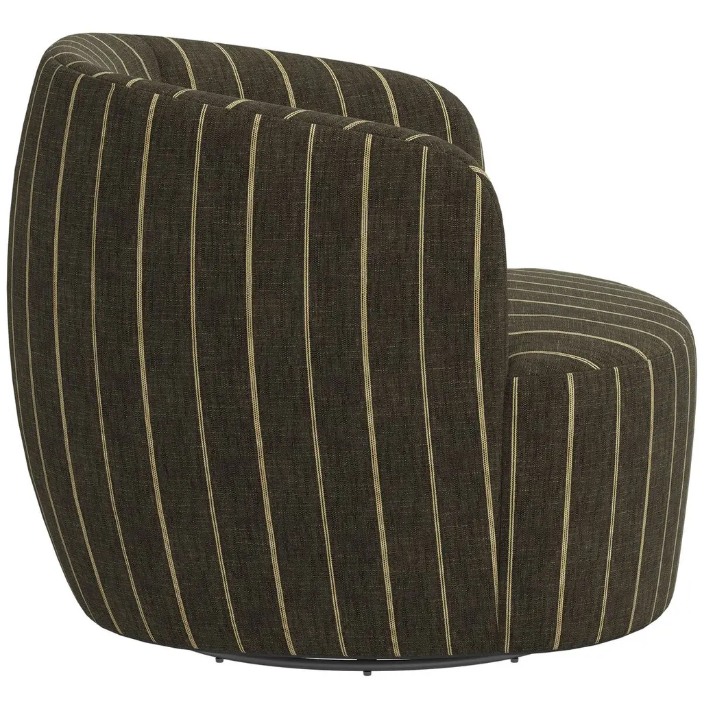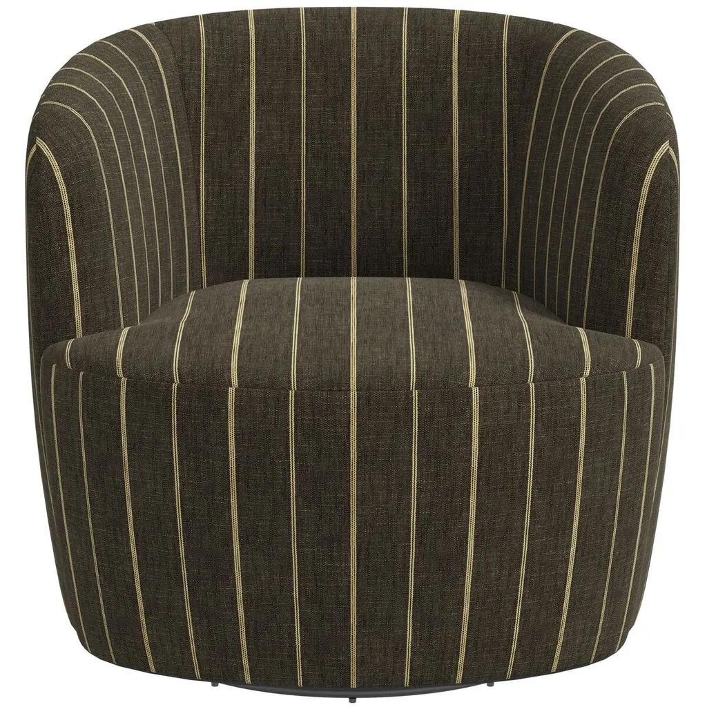 With its welcoming curves and generous cushioning, this swivel chair is the one everyone will race to claim as their own on movie night. Made in the USA, it's upholstered in a stunning striped cotton-linen-blend fabric that will complement just about any room. Its tub-like rounded back and hidden swivel base offer 360-degree movement, a testament to its smart functional design.