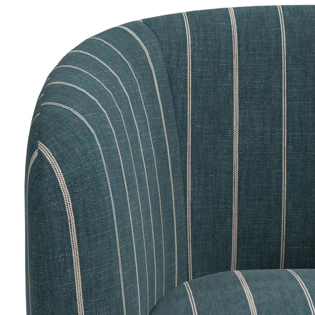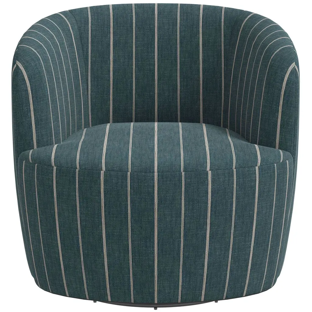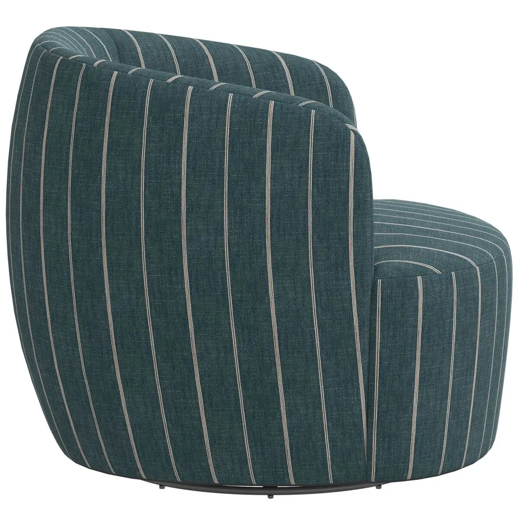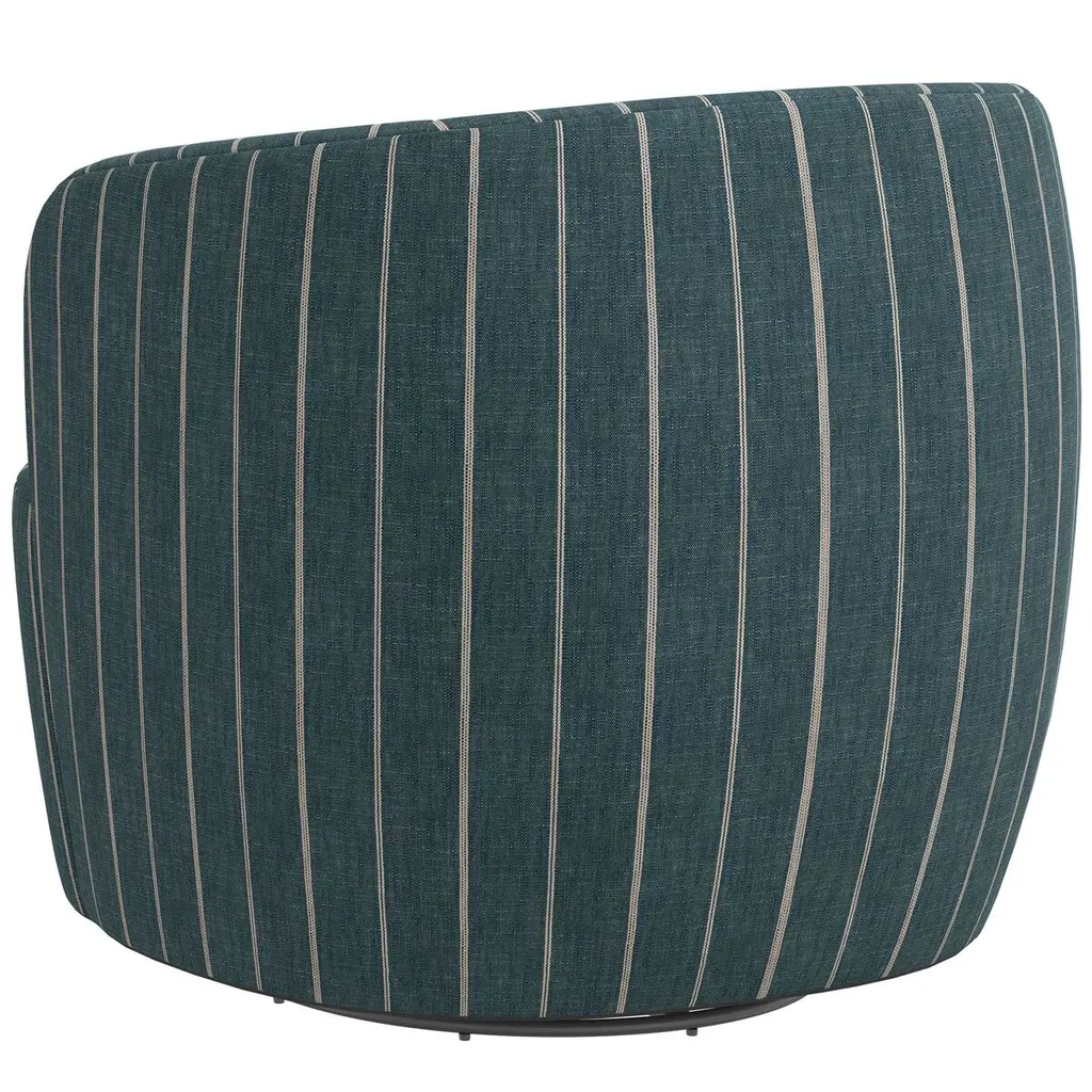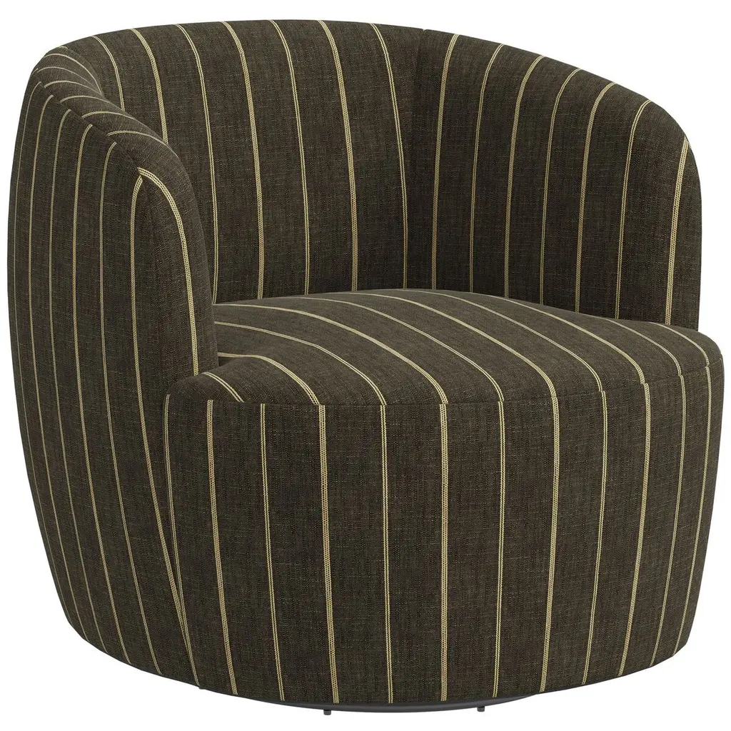 With its welcoming curves and generous cushioning, this swivel chair is the one everyone will race to claim as their own on movie night. Made in the USA, it's upholstered in a stunning striped cotton-linen-blend fabric that will complement just about any room. Its tub-like rounded back and hidden swivel base offer 360-degree movement, a testament to its smart functional design.