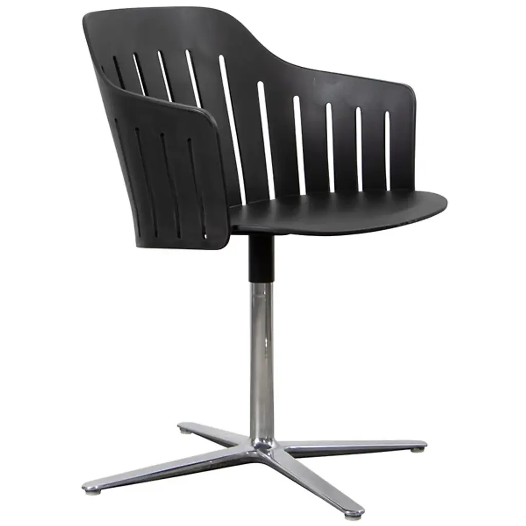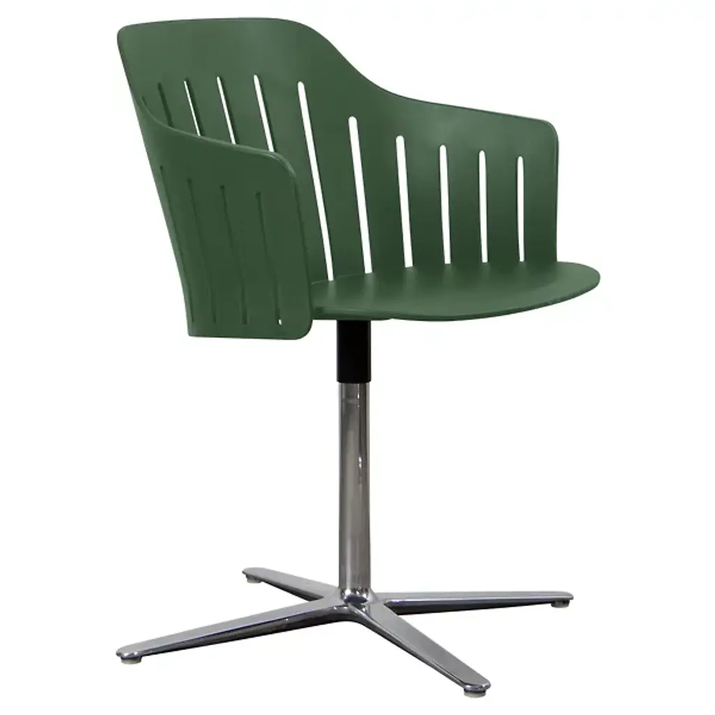The Choice Indoor Chair, Swivel Base by Cane-line gives your dining room a Scandinavian style. Your chair features a swivel base so that you can adjust your seating position at your dinner table. A collection of metal legs stems from a podium-like base, properly supporting the propylene seat. The Choice Indoor Chair’s seatback and arms are lined with slits which create an aesthetic silhouette. Your chair’s shell is made available in a variety of colors so that you can choose the chair which best complements your home décor.