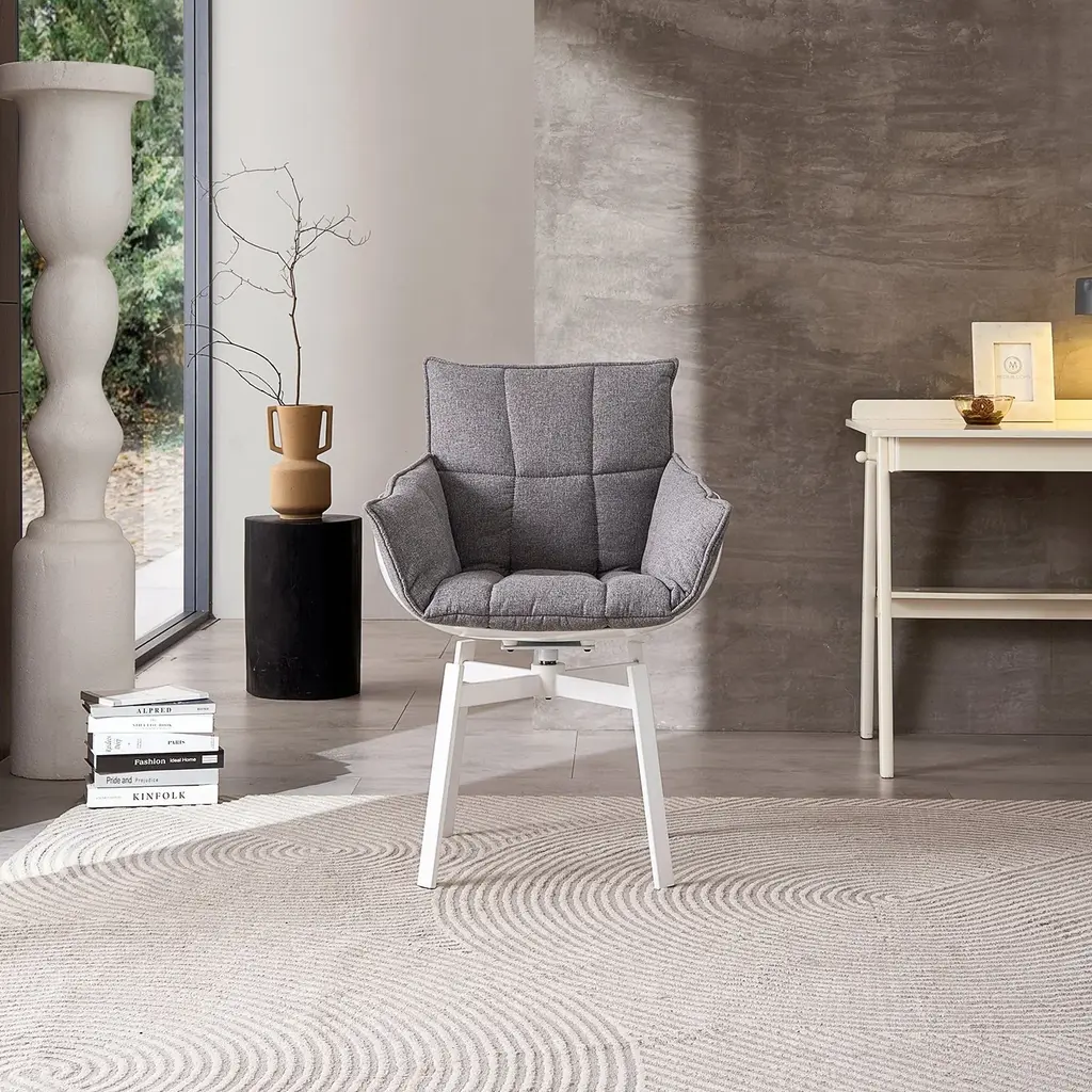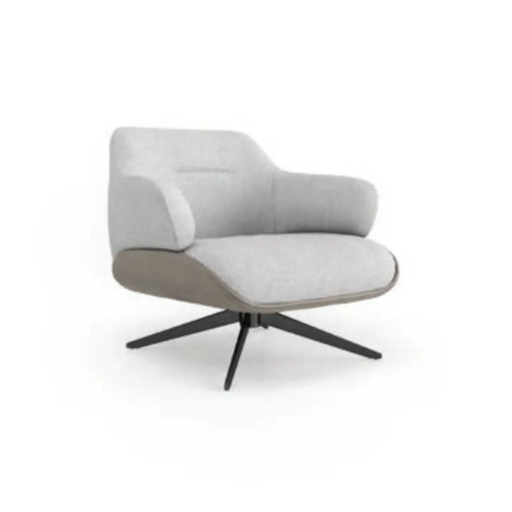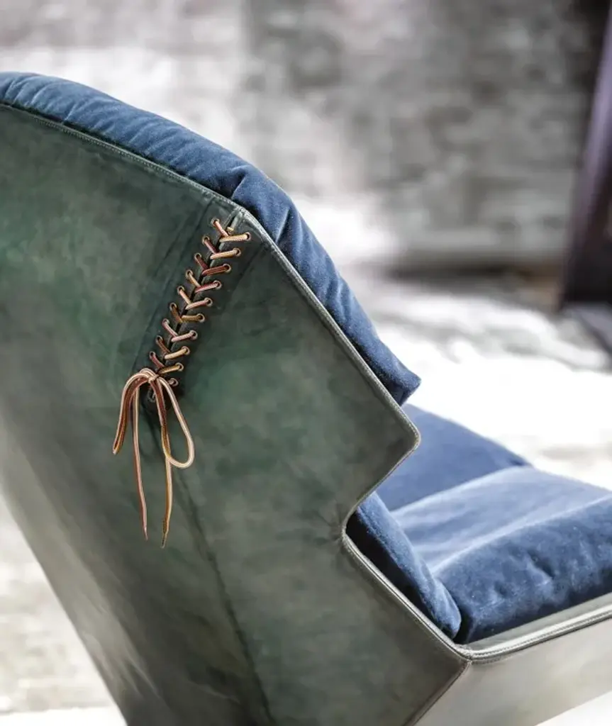 Clarissa is a dynamic easy chair,ready for action but open to relaxation, the temporary suspension of activity. A combination of competition and collaboration, provocation and aesthetics.Injected flame-retardant foam on steel frame. Swivel base in varnished steel or with oak cover. Clarissa cover is not removable; removable quilt is fixed with zipper.