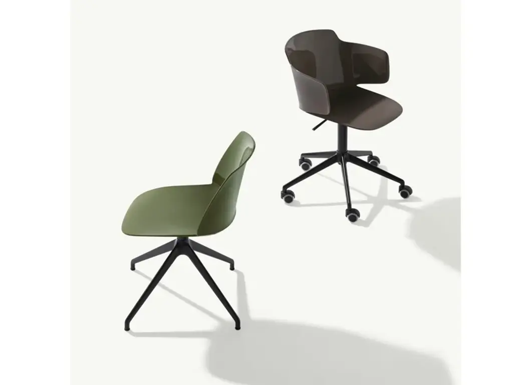 Classy 1086 is a Swivel side chair with 4-star die cast aluminium frame, polypropylene shell.In Classy, practical elements and an unusual look are brought together in the distinctive representation of a gently shaped shell, guaranteeing the highest standards of comfort and ergonomics. The elegant and versatile design are further highlighted by the alternating matt and glossy surfaces. The collection, featuring a chair, chair with armrests and stool with polypropylene shell, is further enriched. The shell is now proposed in the version with fabric-upholstered seat, available on all existing frames. The Classy collection thus becomes the most extensive in the catalogue, offering a broad range of solutions and a free choice of pairings. For indoor and outdoor spaces.