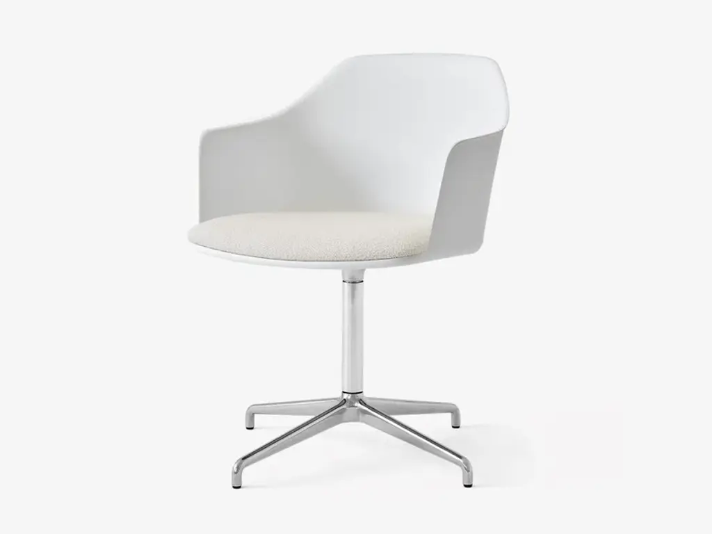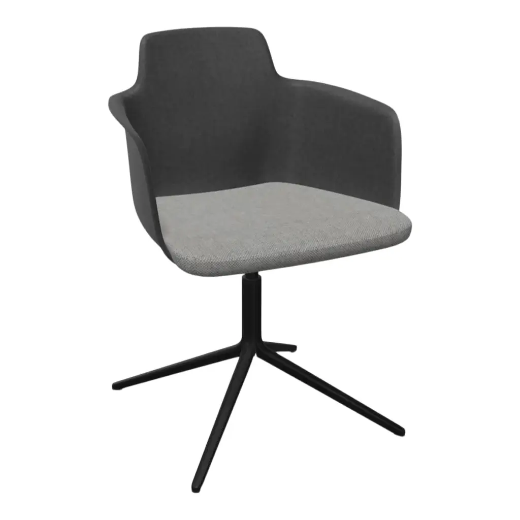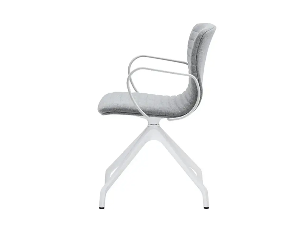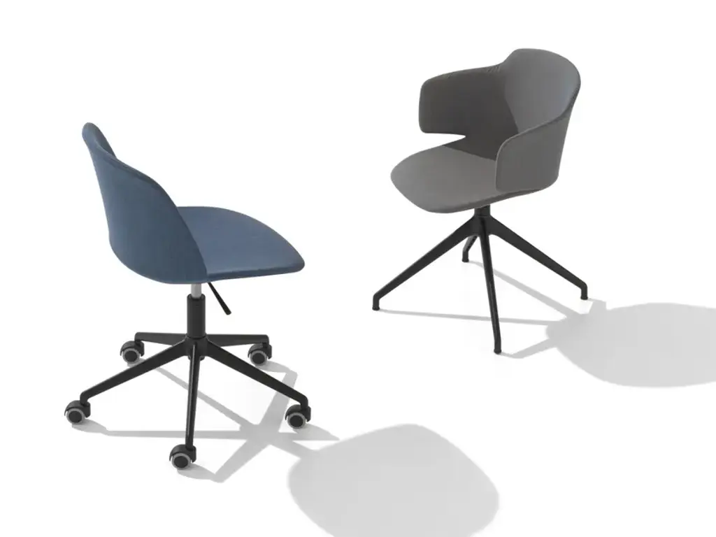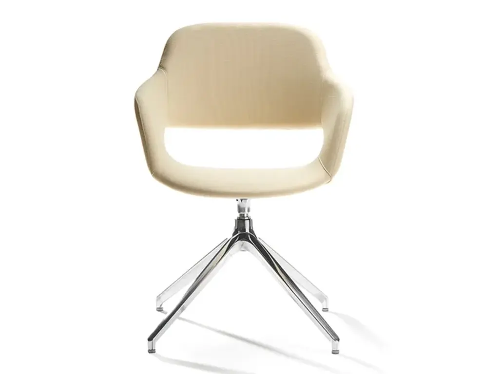 Classy 1087M is swivel chair with armrests, 4-star die cast aluminium frame. Upholstered shell.In Classy, practical elements and an unusual look are brought together in the distinctive representation of a gently shaped shell, guaranteeing the highest standards of comfort and ergonomics. The elegant and versatile design are further highlighted by the alternating matt and glossy surfaces. The collection, featuring a chair, chair with armrests and stool with polypropylene shell, is further enriched. The shell is now proposed in the version with fabric-upholstered seat, available on all existing frames. The Classy collection thus becomes the most extensive in the catalogue, offering a broad range of solutions and a free choice of pairings. For indoor and outdoor spaces.