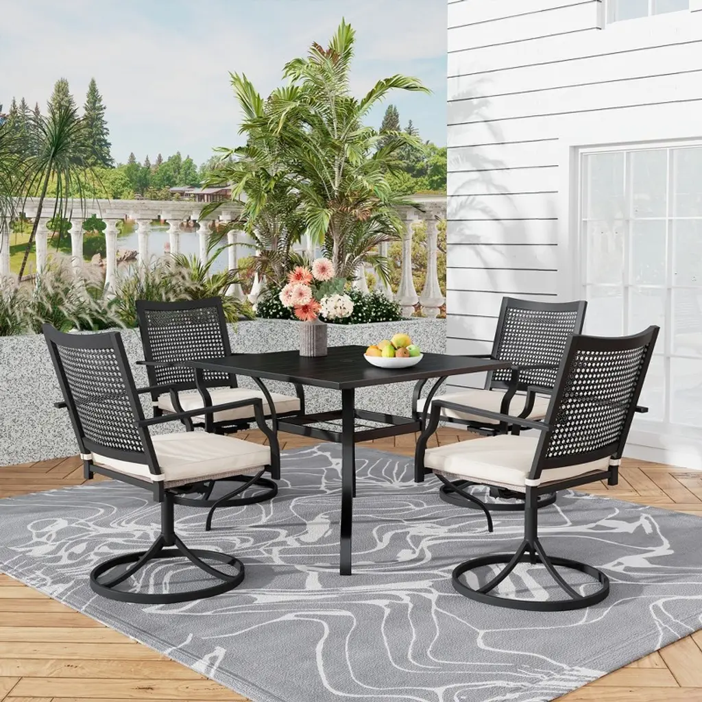 Clihome 5-piece Patio Dining Set,umbrella Hole Square Table & 360° Swivel Cushion Chairs Outdoor Set