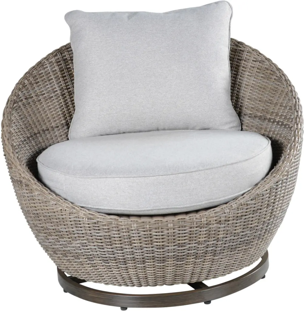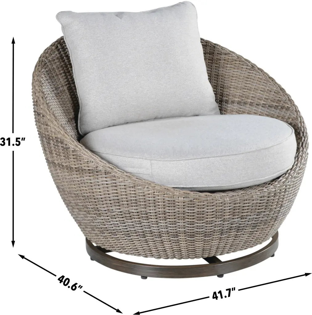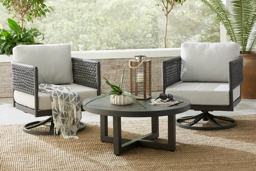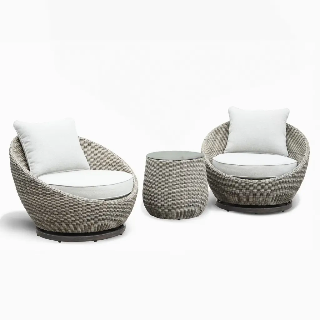 Coastal Set Of 2 Outdoor Swivel Chairs And Side Table
