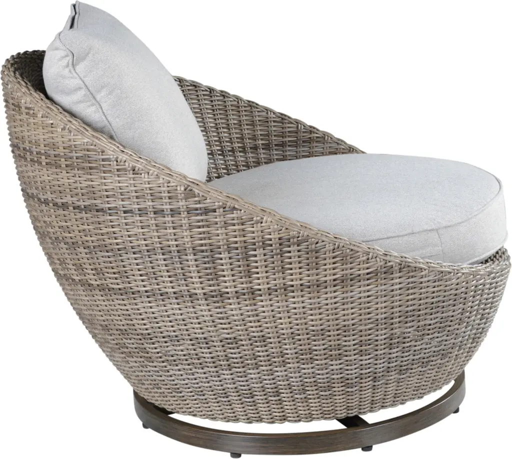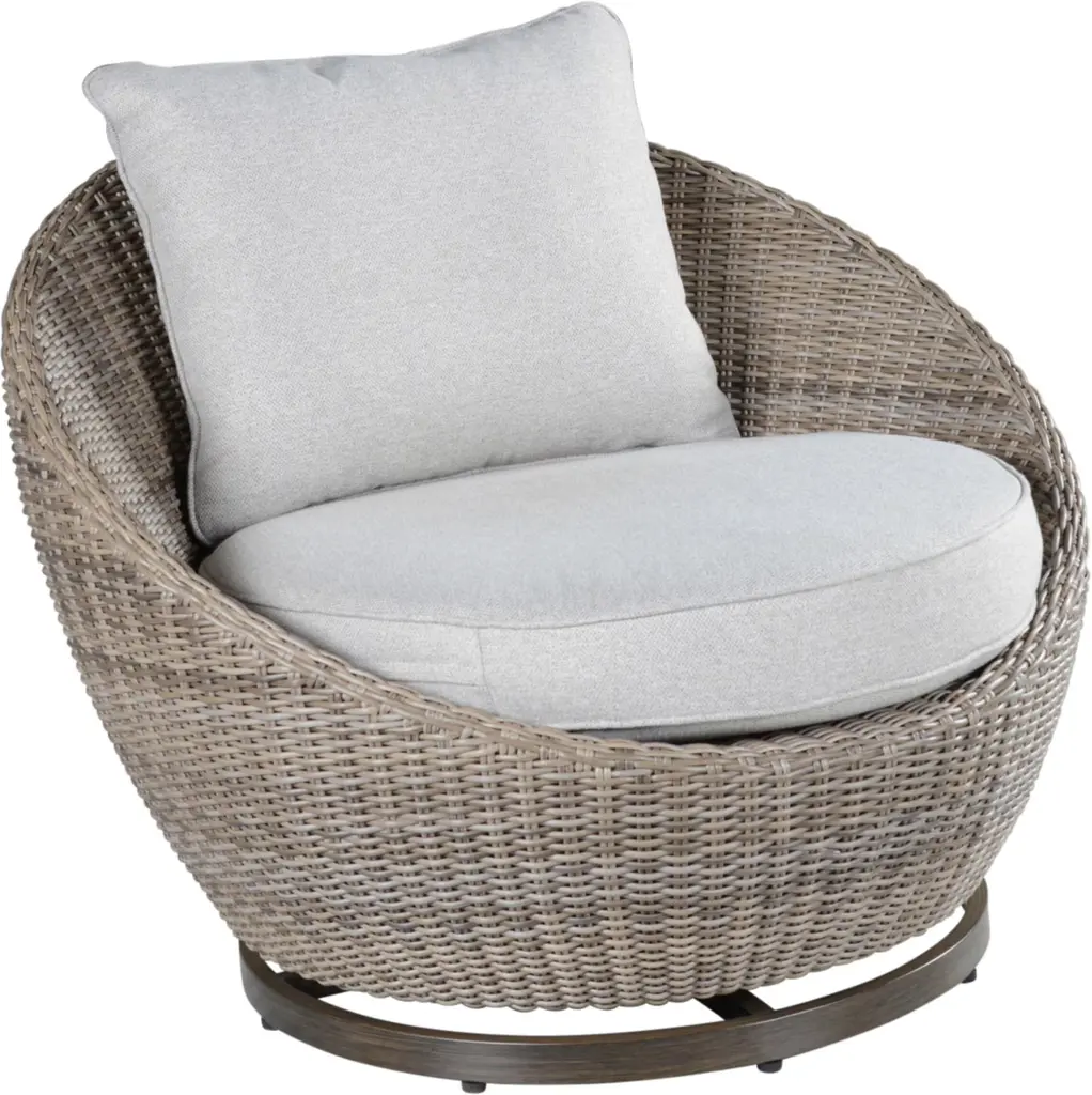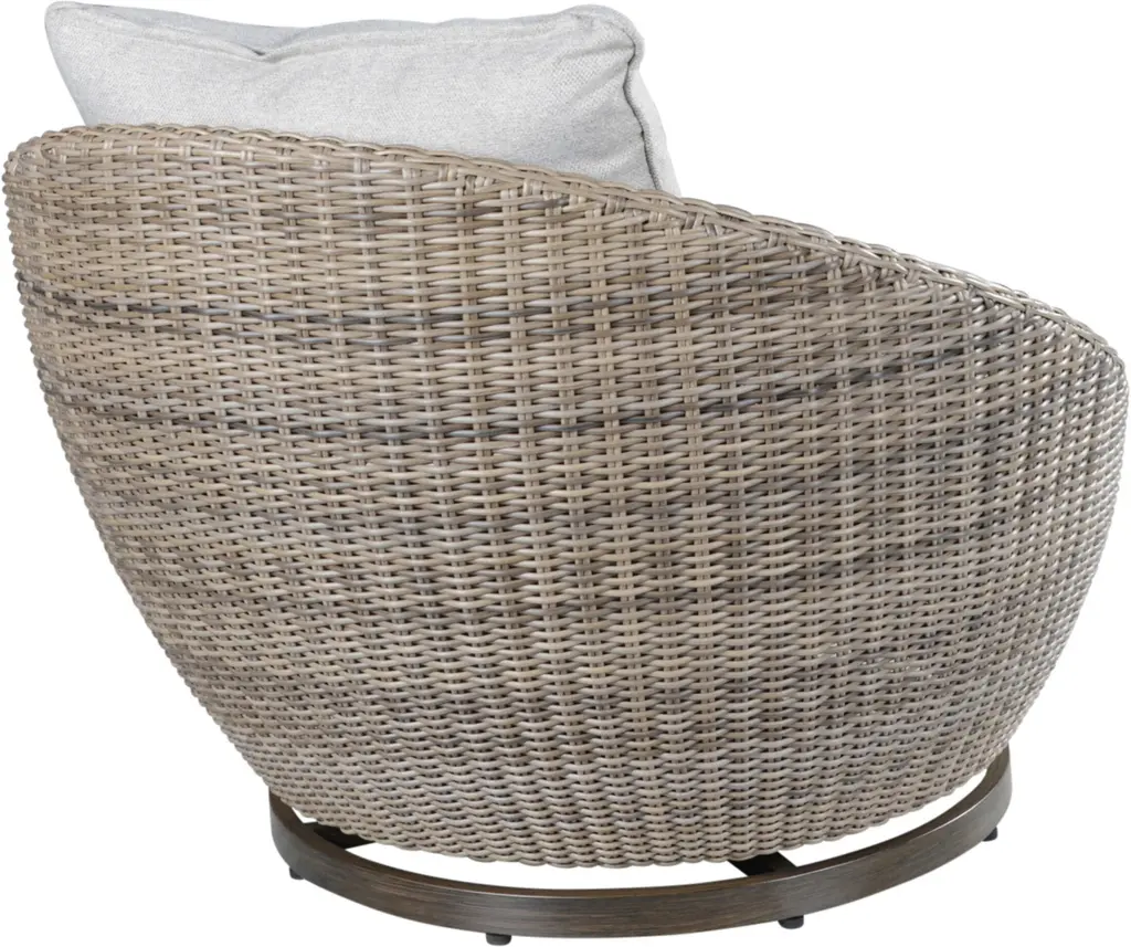 Coastal Set Of 2 Outdoor Swivel Chairs And Side Table