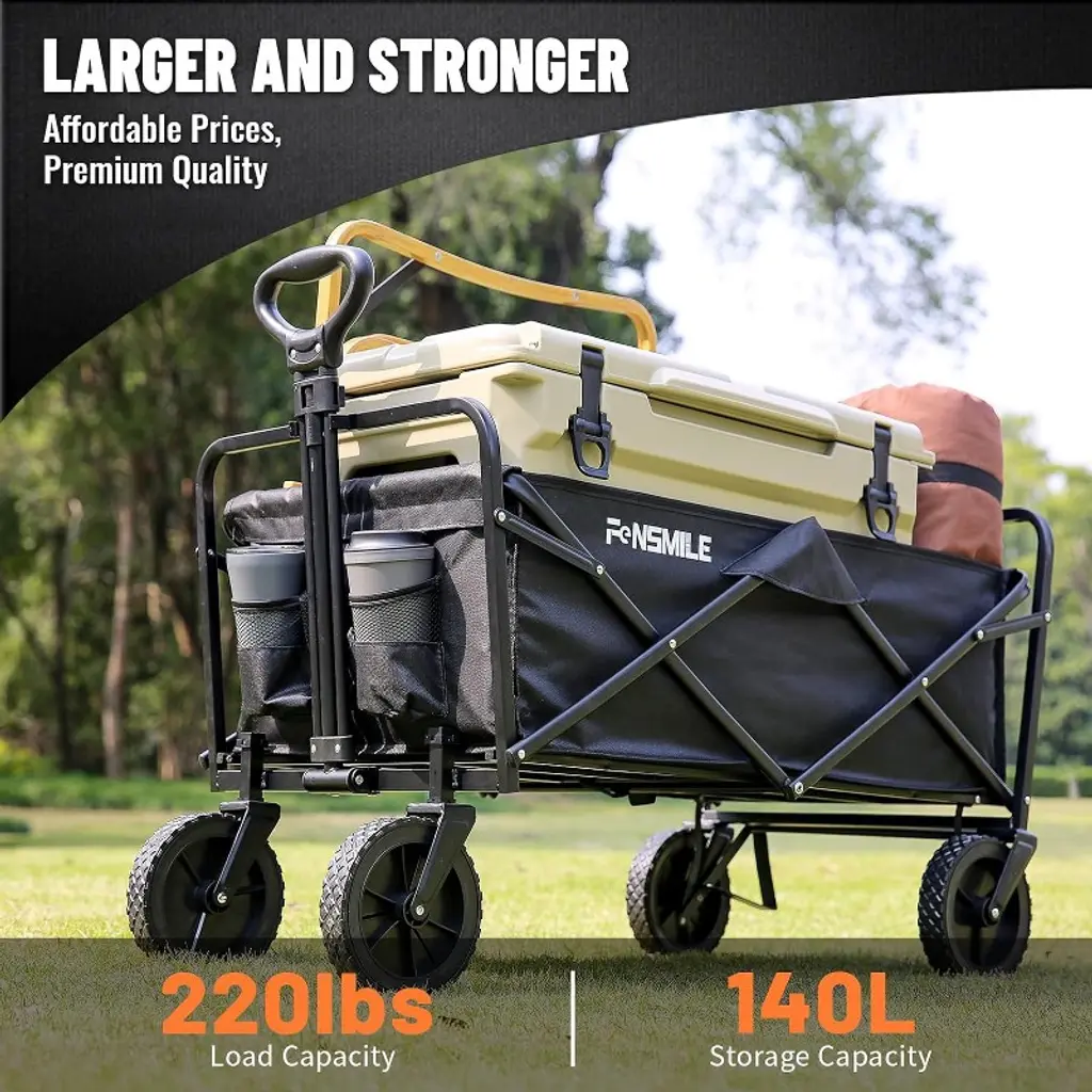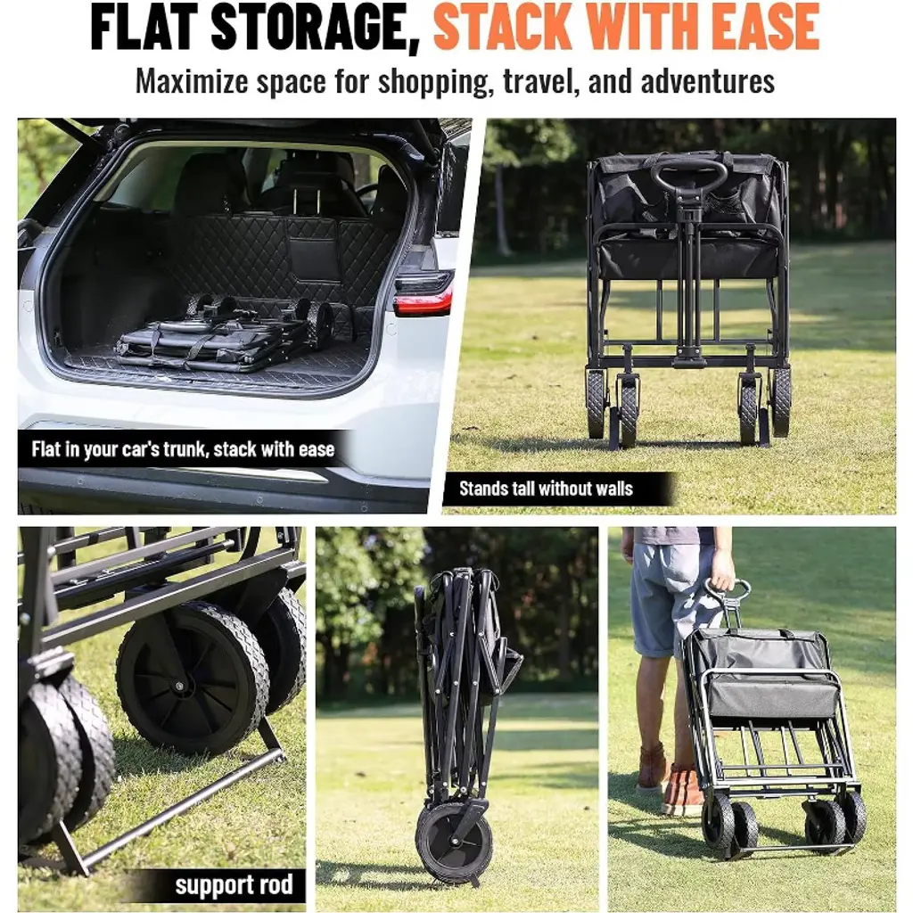 Collapsible Folding Wagon, Heavy Duty 220lbs Capacity, Foldable Utility Cart For Outdoor Camping, Grocery, Sports, Beach - All Terrain