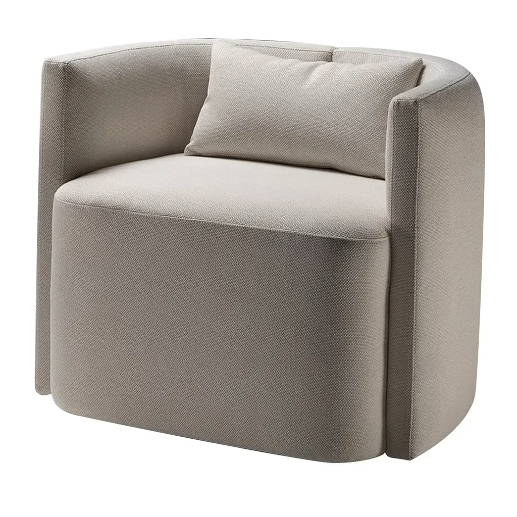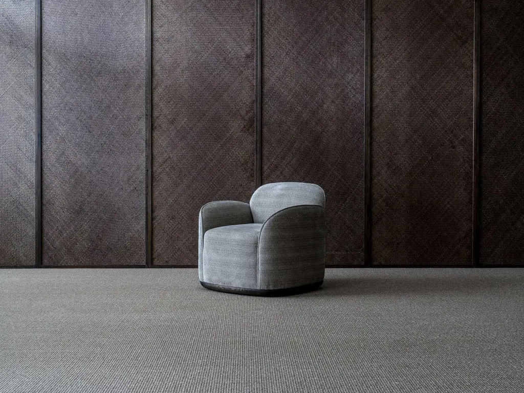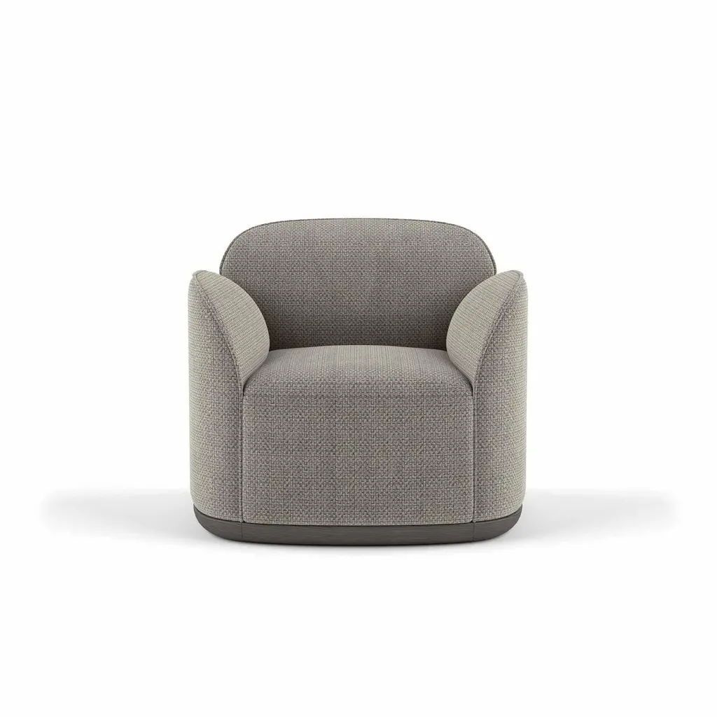 Unio armchair by Poiat Designers: Timo Mikkonen & Antti Rouhunkoski Collection UNIO 2021Dimensions: H. 72 x W. 75 D. 72 SH. 40Model shown: Cat 3. Hanoi 04 - Pierre Frey The Unio Collection, featuring an armchair and sofas, opens a new chapter for Poiat Studio & Furniture, with a focus on new furniture forms and textures. Offering a view of new and upcoming while at the same time acknowledging past decades’ influences and nostalgia, Unio Armchair combines comfort and contemporary design.The armchair has a fully upholstered plywood frame, commercial grade foam, and a solid ash plinth. The single-seater armchair can be acquired with a swivel mechanism that allows the product to rotate and revert to its original position.The selection of upholstery fabrics for Unio Collection is a carefully curated selection of fine fabrics from the industry’s most esteemed manufacturers, such as Dedar, Pierre Frey and Larsen.A winner of the Warmest Design prize at Monocle Design Awards 2022, the Unio Armchair combines influences from the past and present – focusing on soft forms and textures.