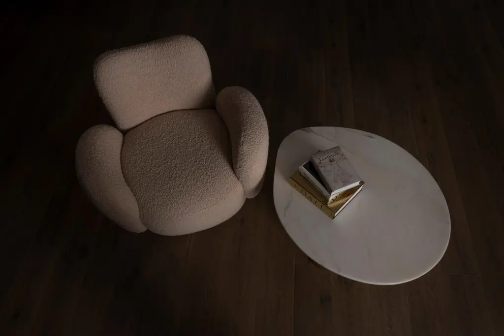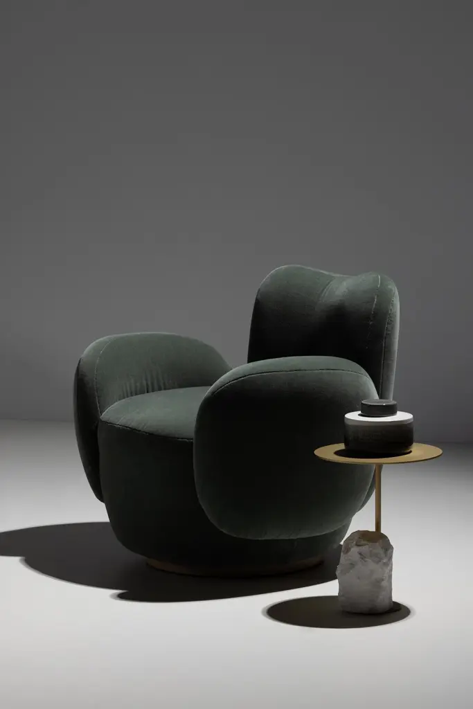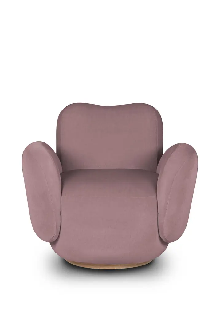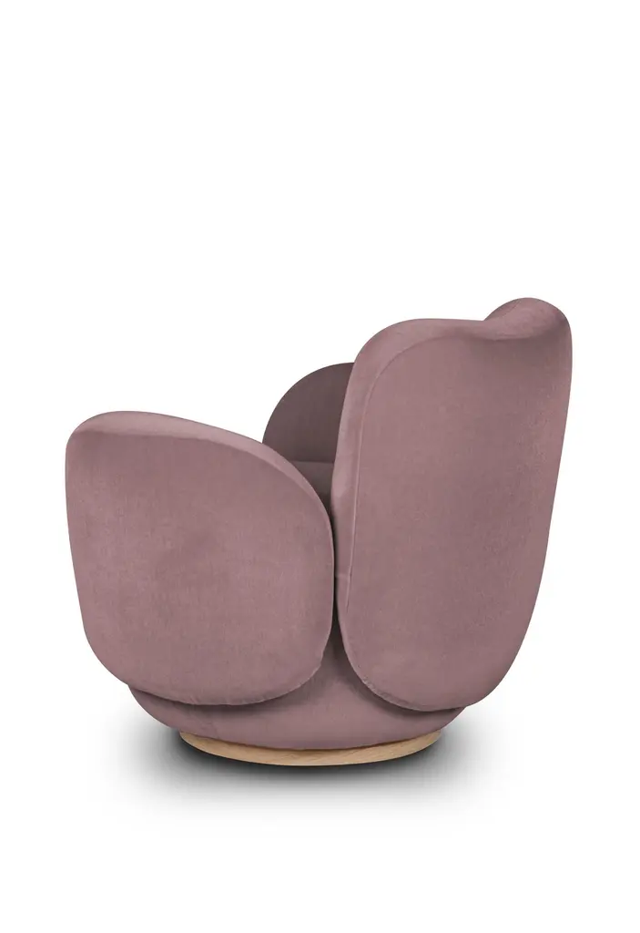 Mid-Century Modern Conchula Swivel Armchair, Contemporary Collection, Handcrafted in Portugal - Europe by Greenapple.The Conchula swivel lounge chair is a room-defining furniture piece, distinguished by its eye-catching silhouette. Designed to provide ultimate comfort for moments of relaxation, Conchula seamlessly combines timeless craftsmanship with modern sophistication. Whether paired with the Conchula curved sofa or daybed, this lounge chair enhances any contemporary interior, elevating the space with its refined presence.The Conchula armchair is upholstered in lilac mohair velvet fabric. The fabric can be treated with a stain-resistant finish for added durability.Its structure is crafted from birch plywood, providing stability and strength. The base features an anti-fungal and vermin-free American oak veneer with open-pore and matte varnish.For outdoor use, the armchair can be customized with weather-resistant upholstery and high-performance outdoor foam. The internal structure will receive a protective sealing treatment, while the base will be finished with a highly resistant exterior-grade varnish to ensure durability in outdoor conditions.The Conchula lounge chair can be customized in terms of dimensions, materials and finishes.Conchula Armchair Material CodesWD027 American Oak, Stained Open-pore, Varnished, Natural White Oak, MatteMohair Velvet, LilacHandcrafted in Portugal - Europe by GreenappleUnique by design, Crafted by peopleGreenapple transforms contemporary spaces into exclusive narratives of design and craftsmanship. From custom-made furniture to bespoke interiors, each creation is a timeless work of art, shaped by master artisans who honor centuries-old techniques.Founded in 2005 by Sérgio Rebola and Rute Martins, Greenapple has earned global recognition among high-end clientele and leading design firms. While Rute designs each unique piece, Sérgio ensures uncompromising quality from design to production and from production to your home. We provide a seamless experience, offering short production lead times, worldwide delivery within 7 to 10 days, and white-glove service upon request.For U.S. clients, we can handle all customs clearance, cover duties, and offer white-glove service as well upon request.Armchair, Accent Chair, Easy Chair, Wing Chair, Club Chair