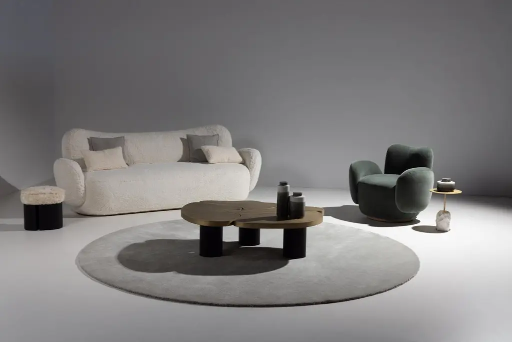 Contemporary Conchula Accent Chair, Swivel, Dedar Mohair, Handmade By Greenapple