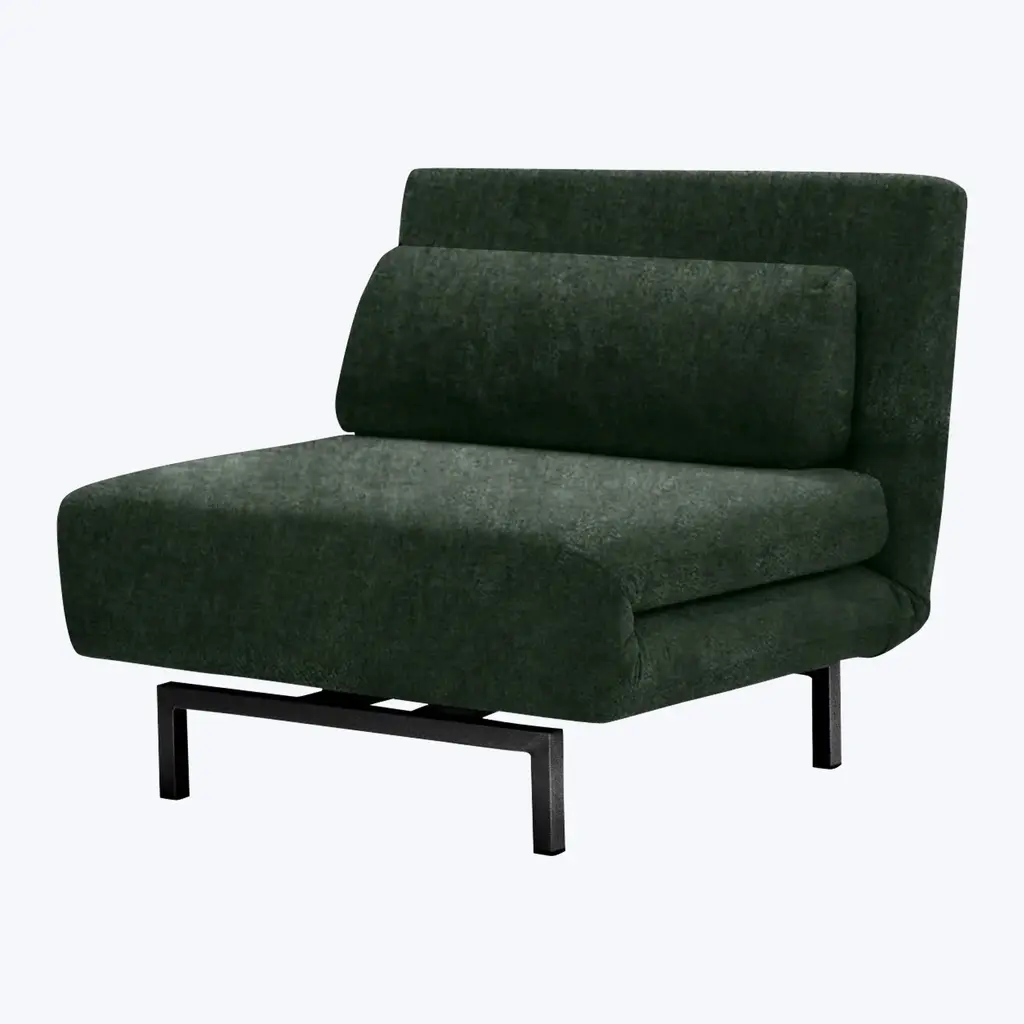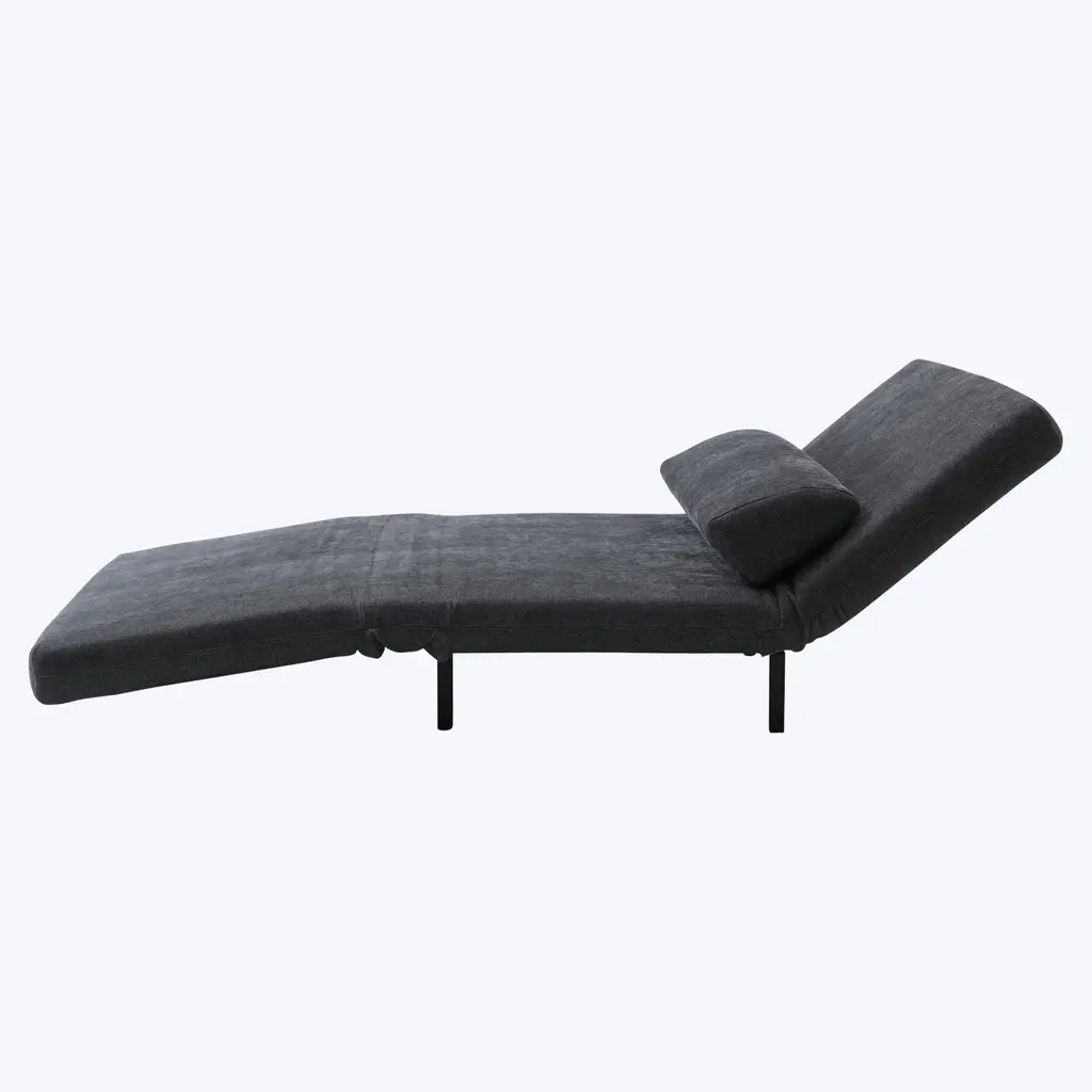 The ultimate multi-functional piece of furniture for your living room, bedroom, or home office, this Convertible Swivel Lounge Chair is the perfect spot to cozy up for a quick nap, a comfy spot to read a book, or daybed when folded out. Featuring a 360-degree swivel and five reclining positions, this lounger chair includes a matching back pillow for extra comfort. This convertible chair is the ideal way to save space in small apartments or studios. Finished with a black steel frame.