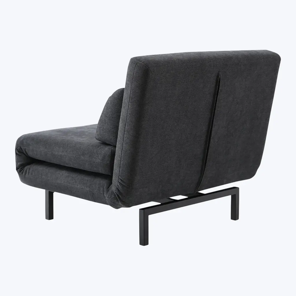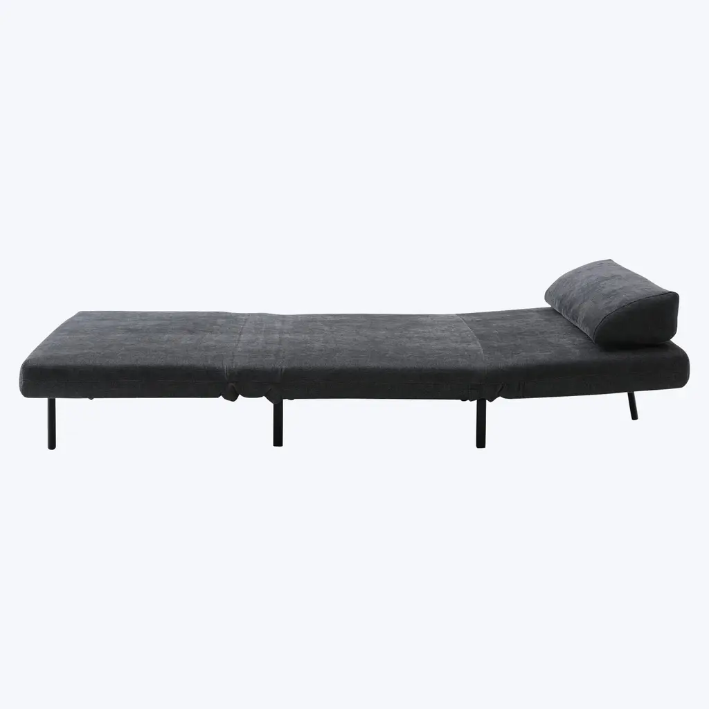 The ultimate multi-functional piece of furniture for your living room, bedroom, or home office, this Convertible Swivel Lounge Chair is the perfect spot to cozy up for a quick nap, a comfy spot to read a book, or daybed when folded out. Featuring a 360-degree swivel and five reclining positions, this lounger chair includes a matching back pillow for extra comfort. This convertible chair is the ideal way to save space in small apartments or studios. Finished with a black steel frame.