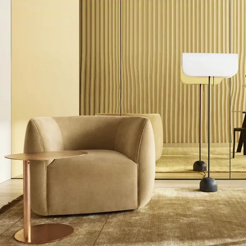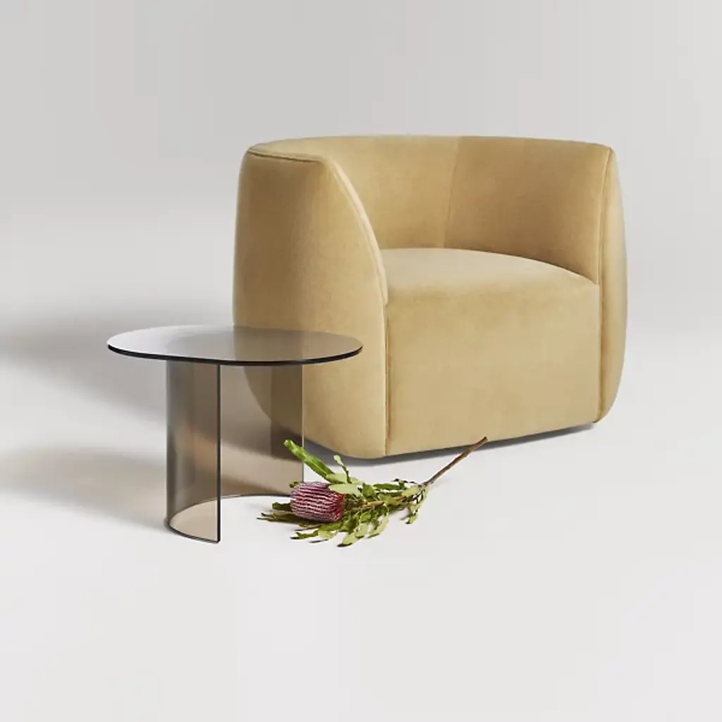 Kick back with the Council Swivel Lounge Chair by Blu Dot. This compact seat boasts rounded features which augment its mid-century modern aesthetic. Your lounge chair is BIFMA tested and is composed of intricate fabric. This chair’s deep cushion is surrounded by comfortable armrests so that you can sit in a relaxed posture. The chair’s seatback is slightly undersized when compared to the seat’s height, allowing you and your guests to delight in this fixture’s meticulous craftsmanship. Your chair swivels with ease, giving you a customized lounging experience.