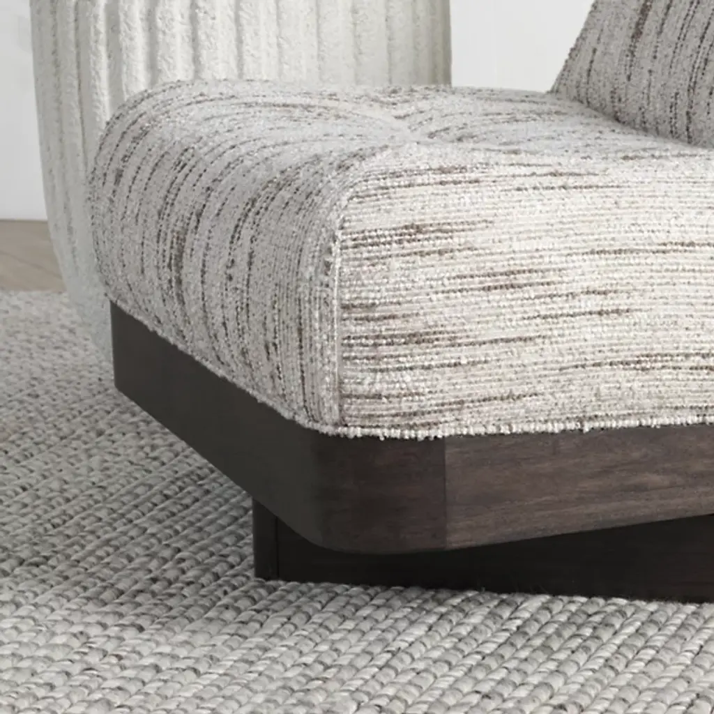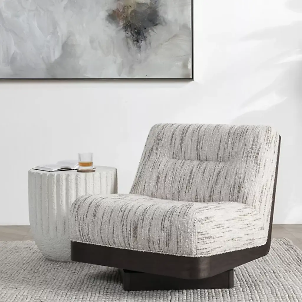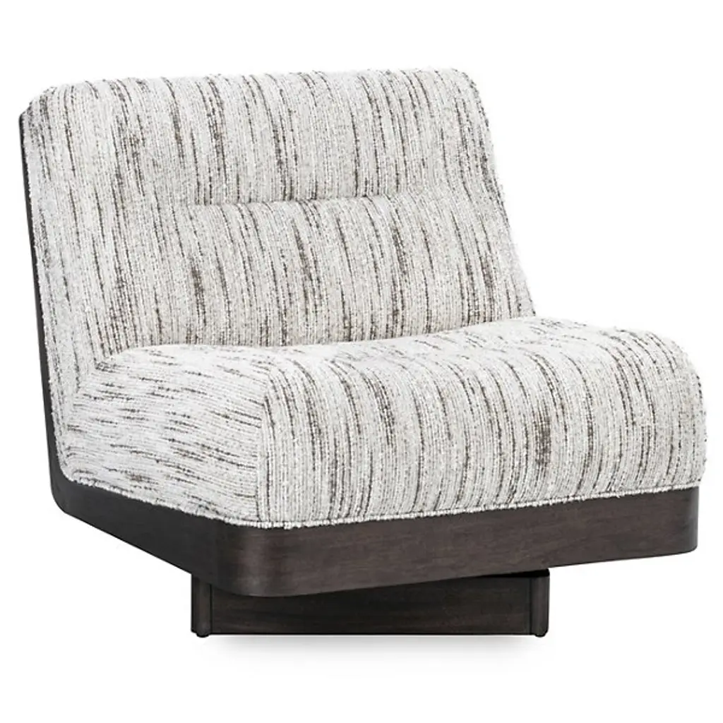 The Crandall Swivel Accent Chair from Classic Home showcases cozy boucle upholstery for a soft, textured appeal. Its low-profile seating ensures contemporary comfort, while sleek walnut veneer side panels bring warmth and sophistication. The smooth swivel base adds versatility, making it a functional and stylish addition to living rooms, reading nooks, or offices. Blending timeless charm with modern design, this chair elevates any setting, offering the perfect balance of comfort, elegance, and practicality.