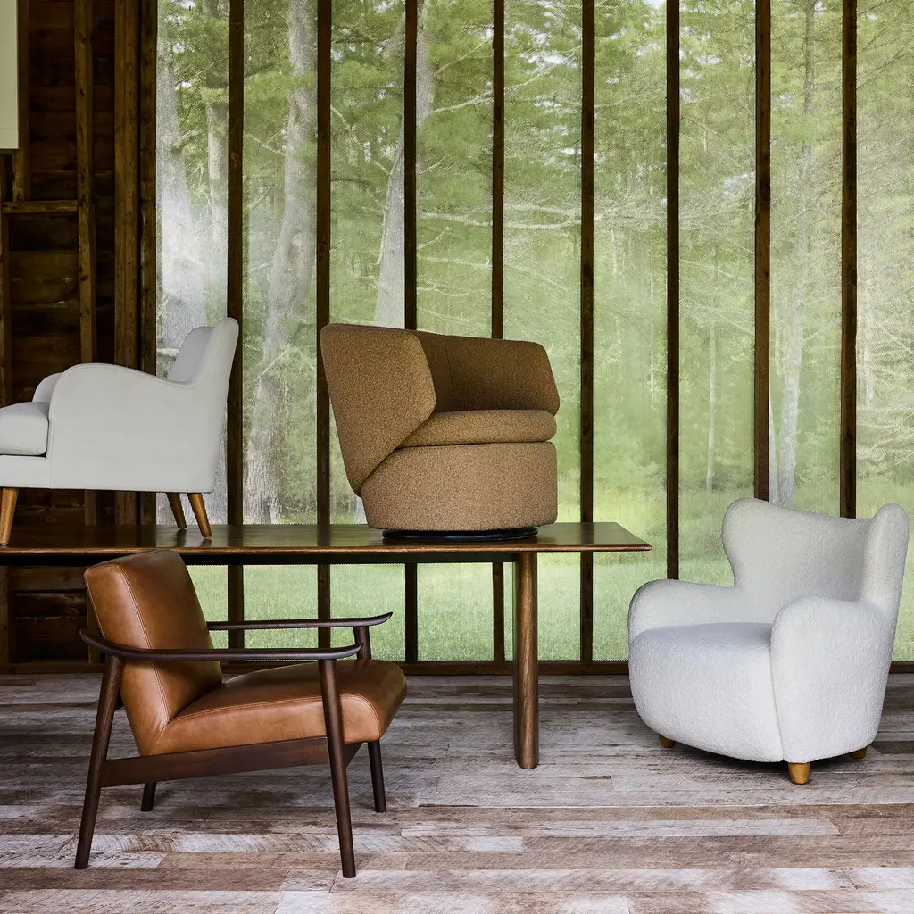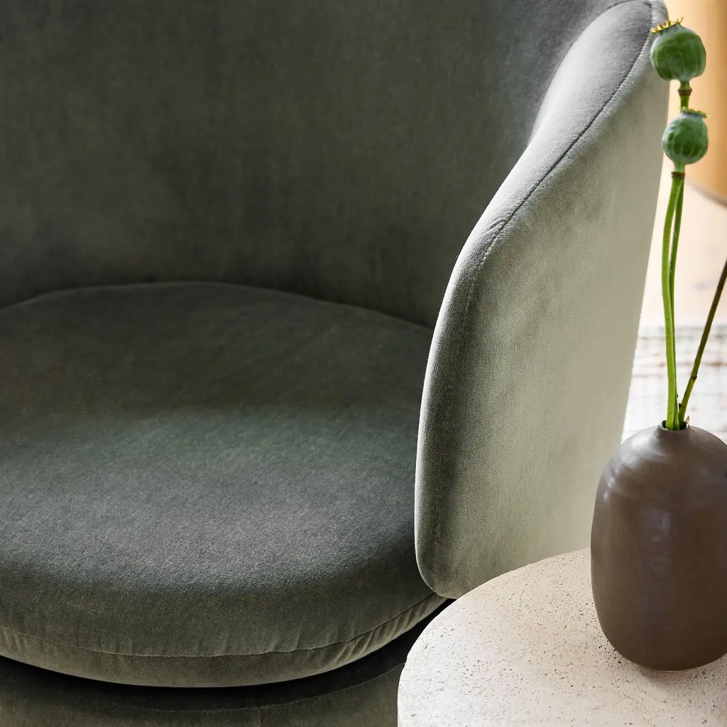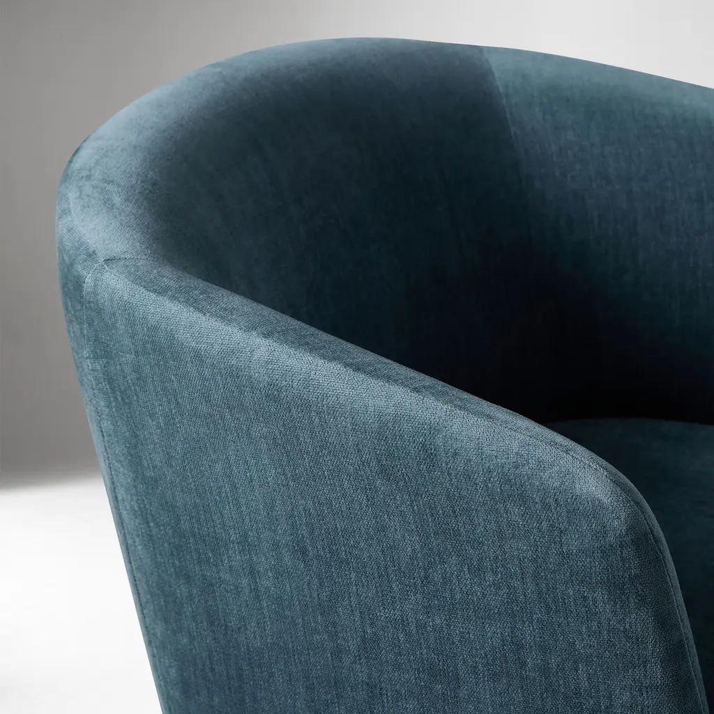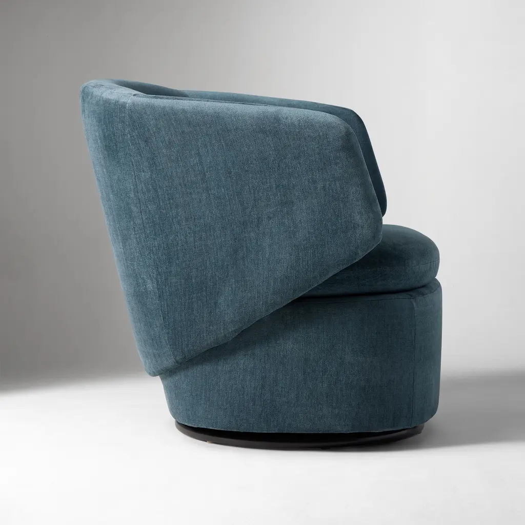 A contemporary update to the classic drum chair. It's perfect for TV viewing and easy conversation. Covered in your choice of popular fabrics.
