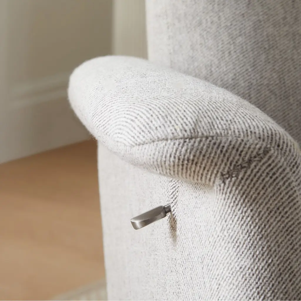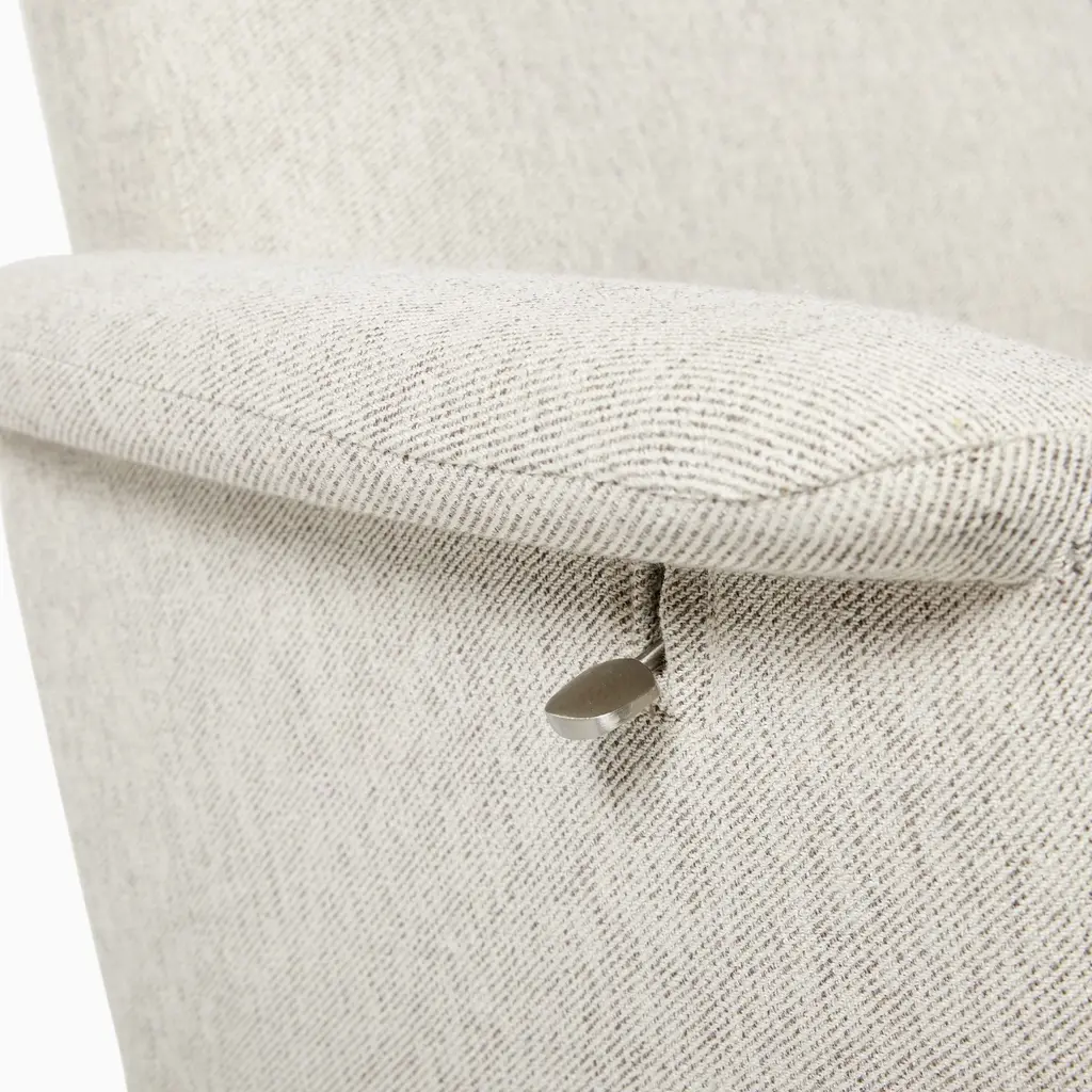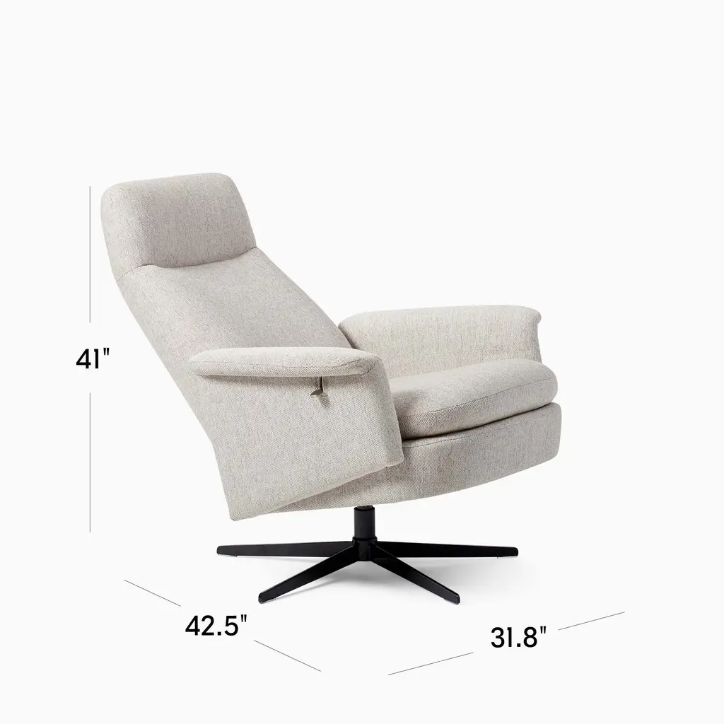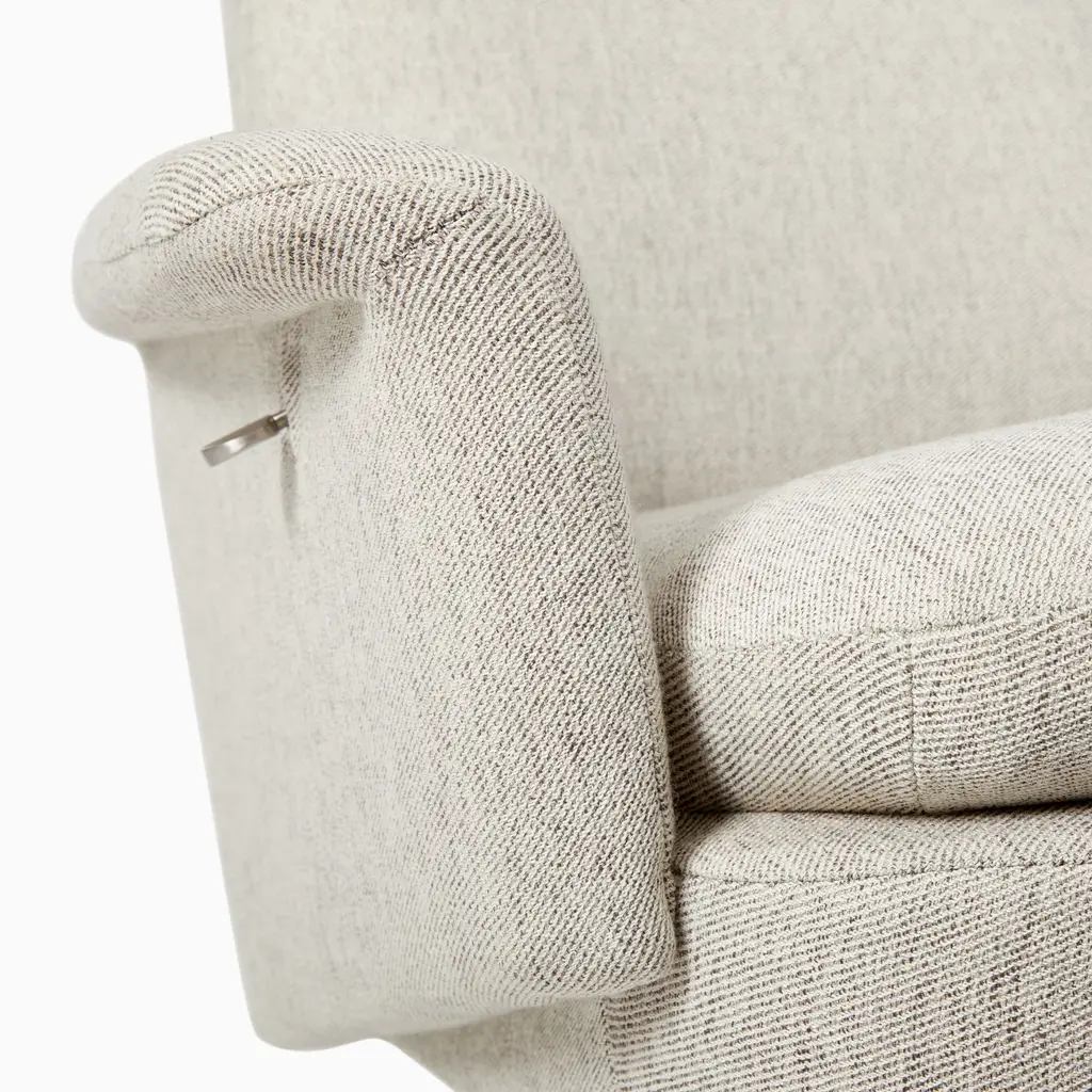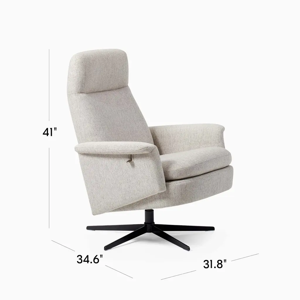This contemporary chair lets you recline in comfort. Slightly flared arms add a unique design detail. It has a sleek metal swivel base for easy turning. Contract Grade for unmatched durability.