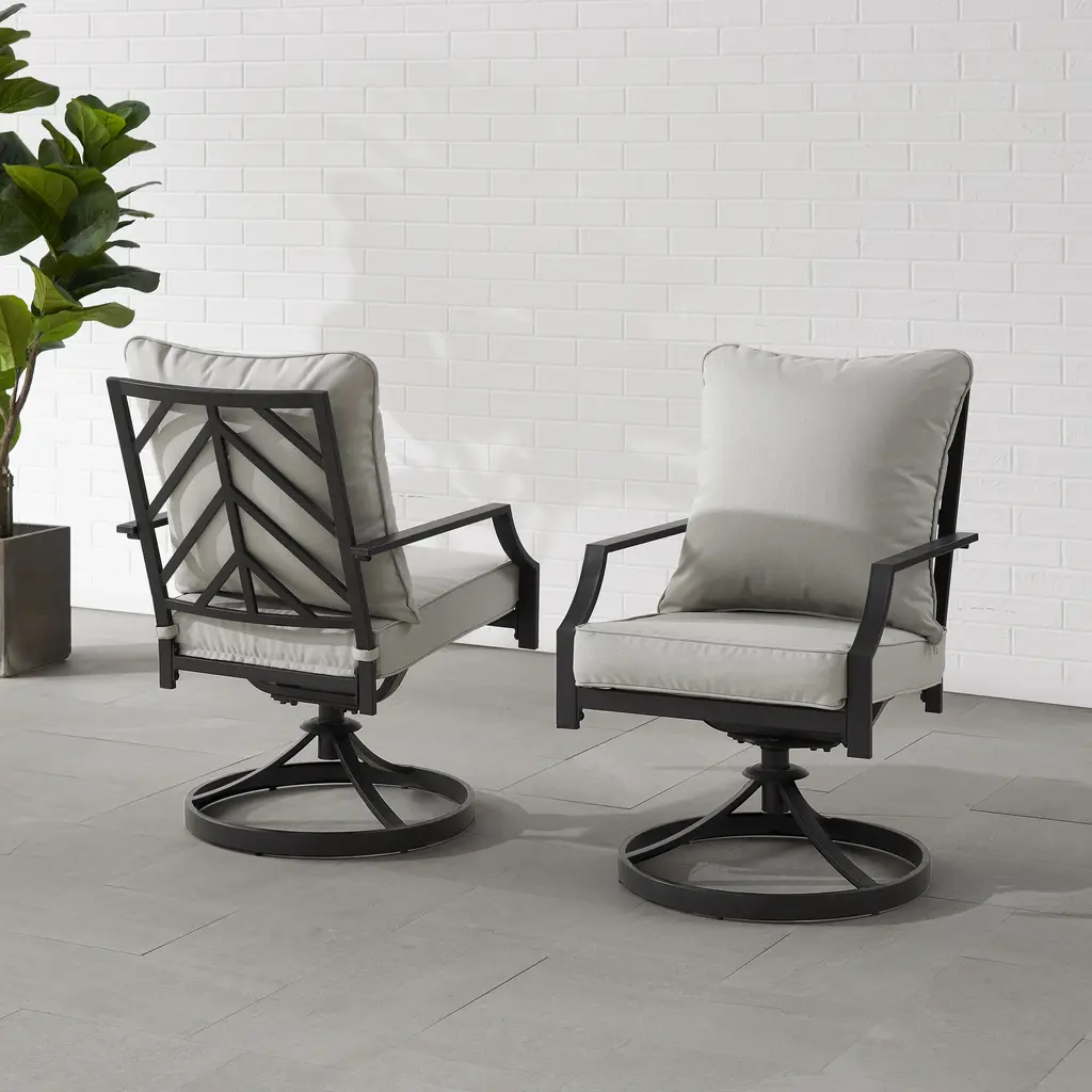 Crosley Otto 2Pc Outdoor Metal Dining Swivel Chair Set - Grey/matte Black