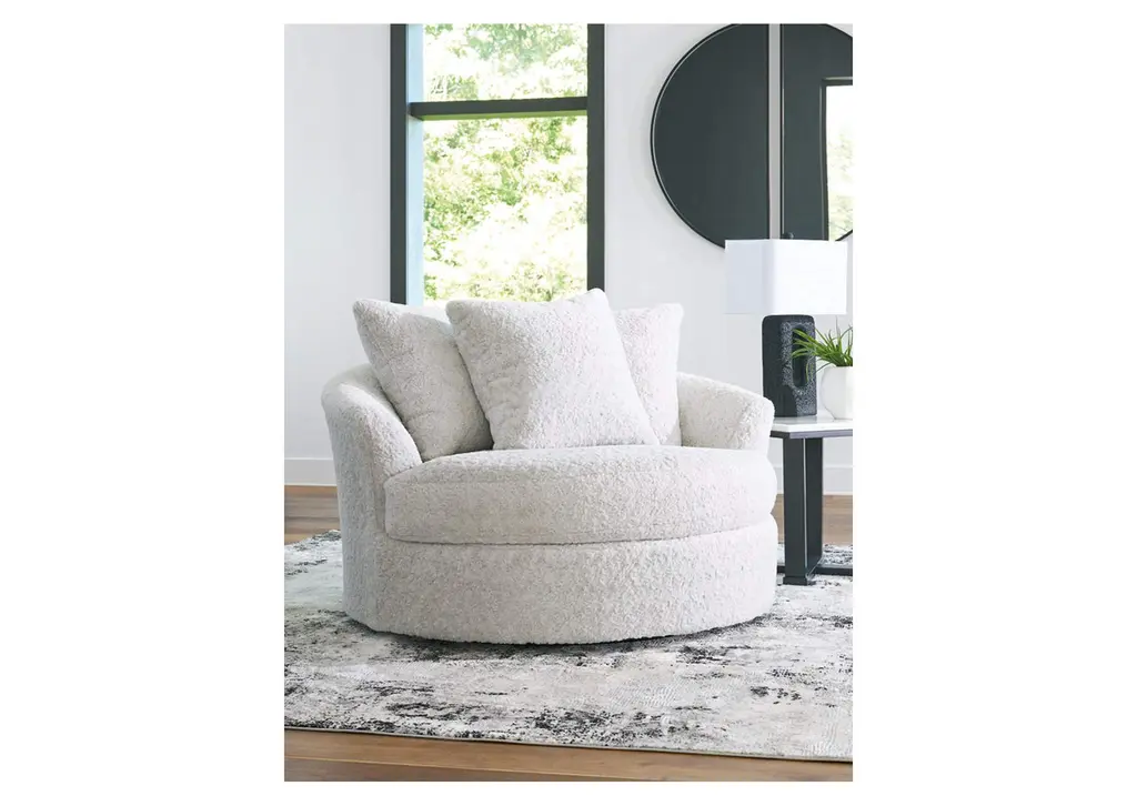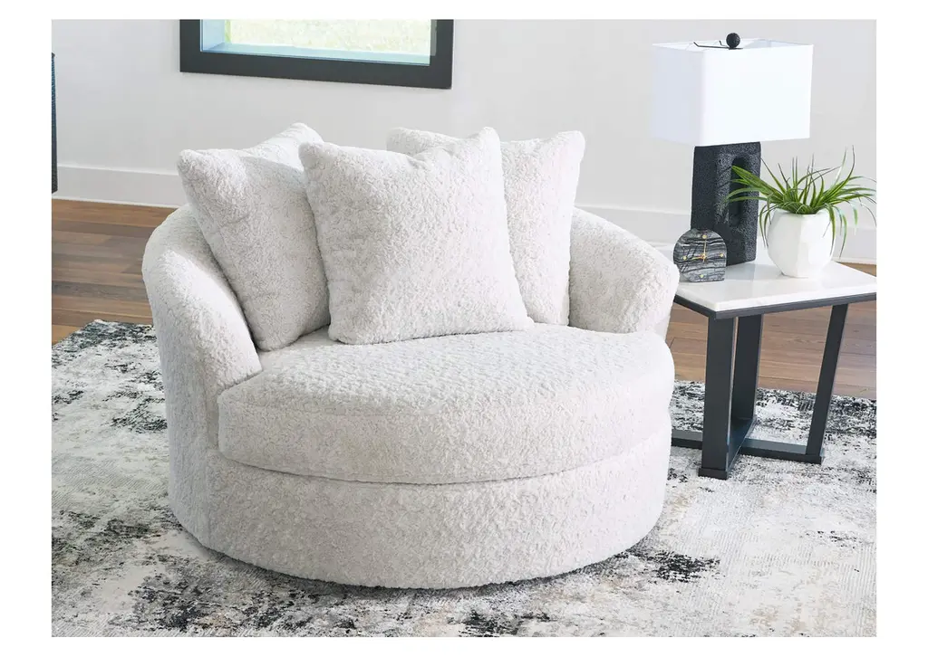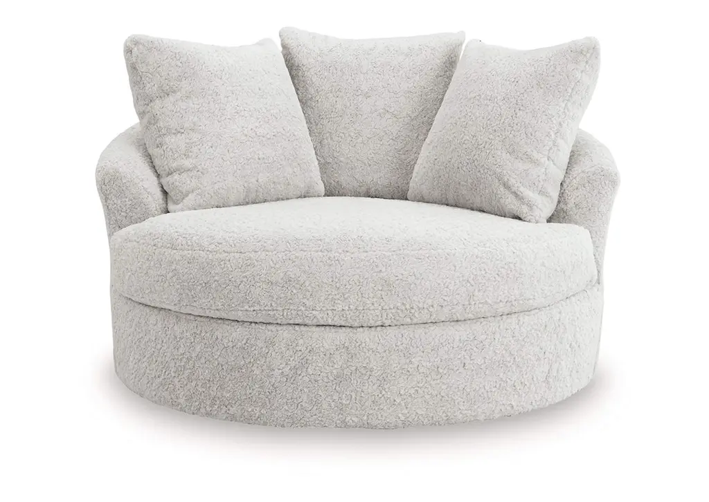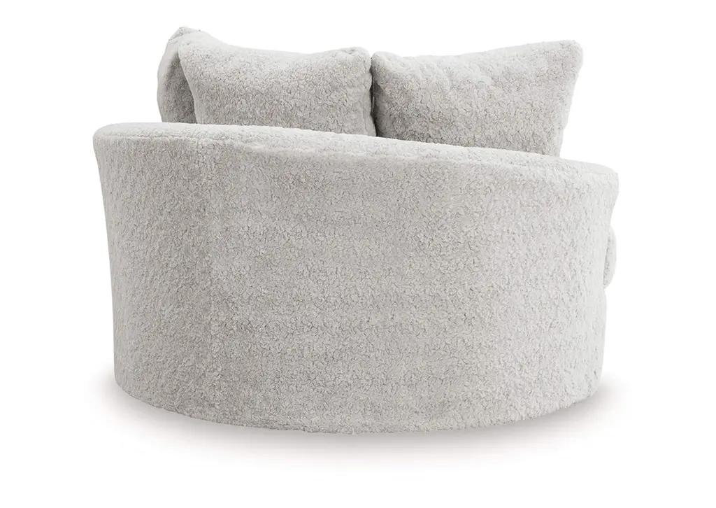 This plush oversized swivel accent chair is the ultimate spot to unwind after a long day. Its ultra soft upholstery feels luxurious against your skin, while the roomy seat and comfy throw pillows provide support in all the right places. With plenty of space to stretch out or snuggle up with loved ones, this piece is perfect for movie nights, game days and everything in between. Weight 145.000 lbs. (65.25kgs.)