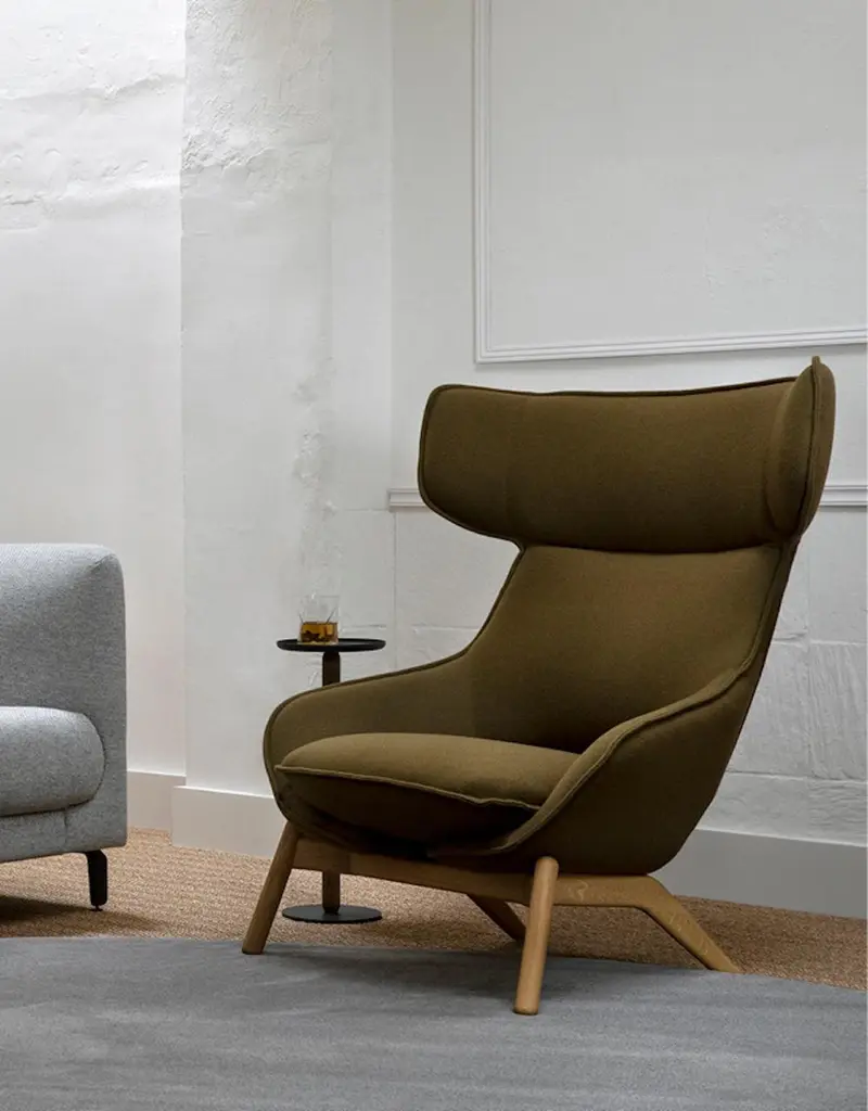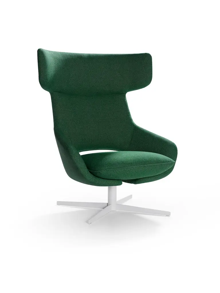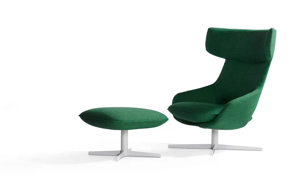 Kalm is Artifort’s large, new cosy armchair by our French designer Patrick Norguet. It is a sanctuary in its own right, a place to unwind and get comfortable. With Kalm, Patrick Norguet has created an iconic, luxurious and comfortable high-back armchair for your living room or study. Kalm is not only a beautiful chair that will earn a special place for itself in your home. According to Norguet, it is also ‘an expressive armchair that is suitable in any project environment. Several Kalm armchairs grouped together will definitely define a hotel lobby or meeting room and create a distinguished and iconic image.’Base: Cross base (chair swiveling, footstool not-swiveling). Finish: powder coat, or as option in polished stainless steel. Standard with transparent plastic gliders. Option: felt gliders. Body: Steel wire framework. Covered with moulded foam. Seat (chair and footstool): Mulitplex with metal plate. Covered with moulded foam. Also available with a non-swiveling footstool: H 40cm x W 61cm x D 64cm. Swivel baseGrade AA fabricPlease note that the item title reflects the primary image. Additional images may reflect the product in different colorways that are also offered on 1stdibs.