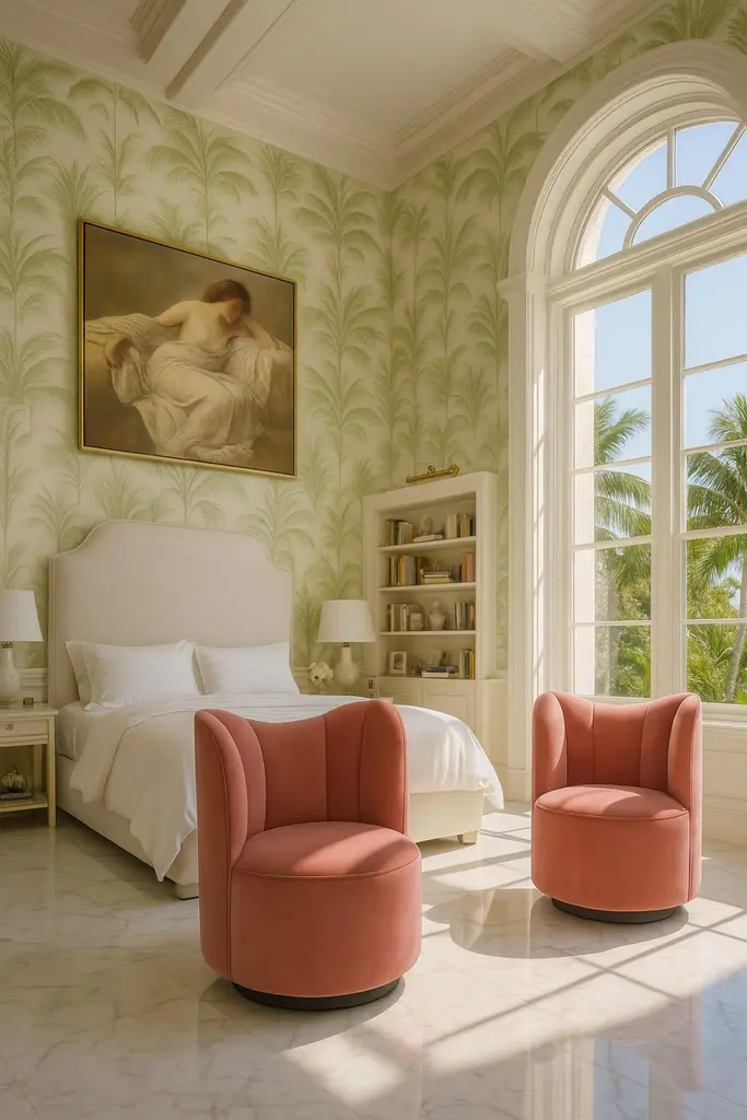 Customizable Hollywood Regency Style Swivel Armchair In Velvet