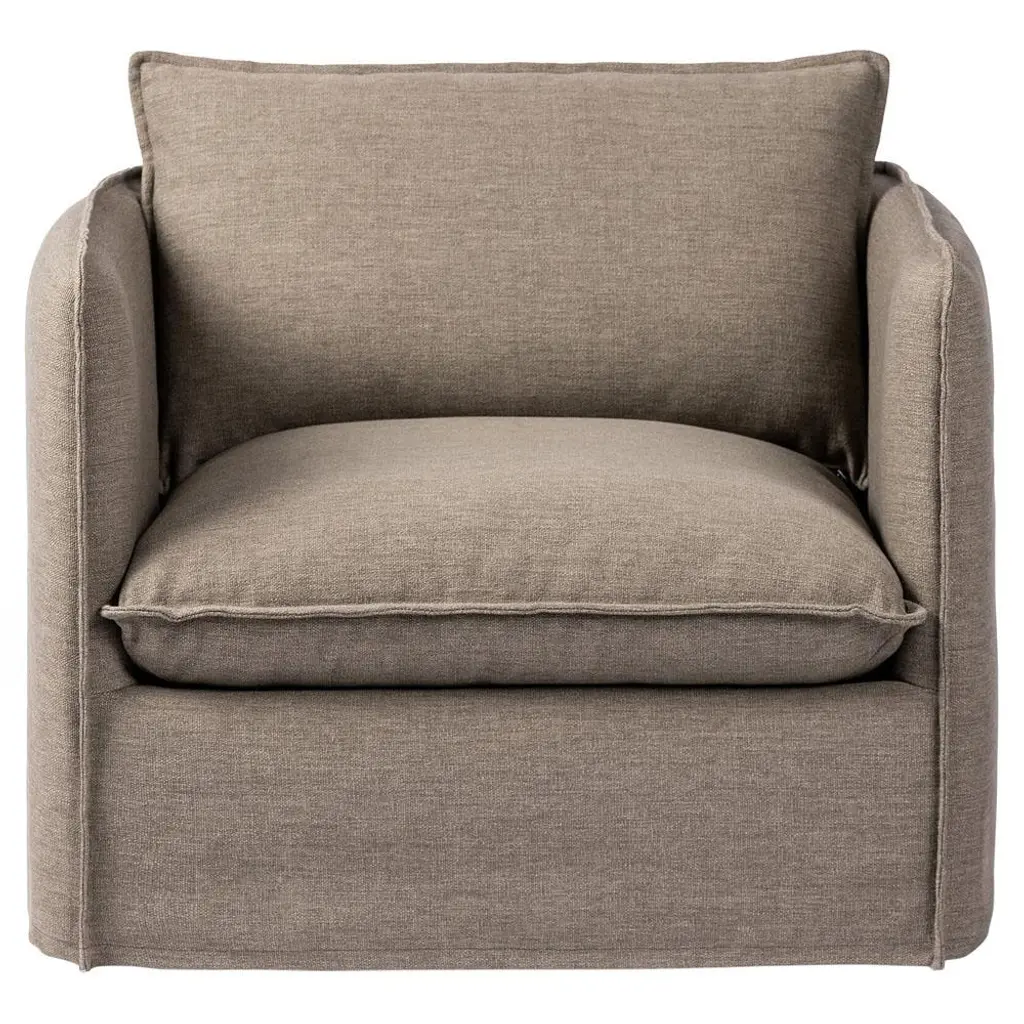 The Dade Outdoor Swivel Chair from Four Hands boasts an exquisite California modern aesthetic that seamlessly combines a compact design with unwavering functionality. Its clean lines provide contemporary allure, and its form lends all-weather comfort thanks to the UV-resistant, water-repellent, and quick-drying olefin cushion. With swivel capabilities, Dade allows you to effortlessly adjust your position, whether enjoying solo relaxation or chatting with friends. Crafted with a sturdy aluminum frame, it guarantees durability.