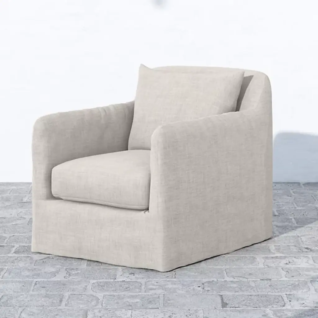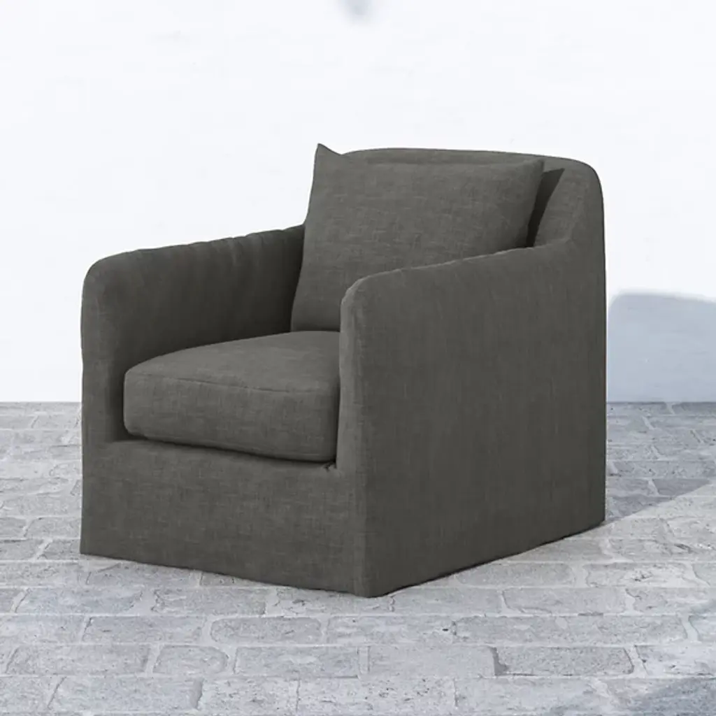 The Dade Outdoor Swivel Chair from Four Hands boasts an exquisite California modern aesthetic that seamlessly combines a compact design with unwavering functionality. Its clean lines provide contemporary allure, and its form lends all-weather comfort thanks to the UV-resistant, water-repellent, and quick-drying olefin cushion. With swivel capabilities, Dade allows you to effortlessly adjust your position, whether enjoying solo relaxation or chatting with friends. Crafted with a sturdy aluminum frame, it guarantees durability.
