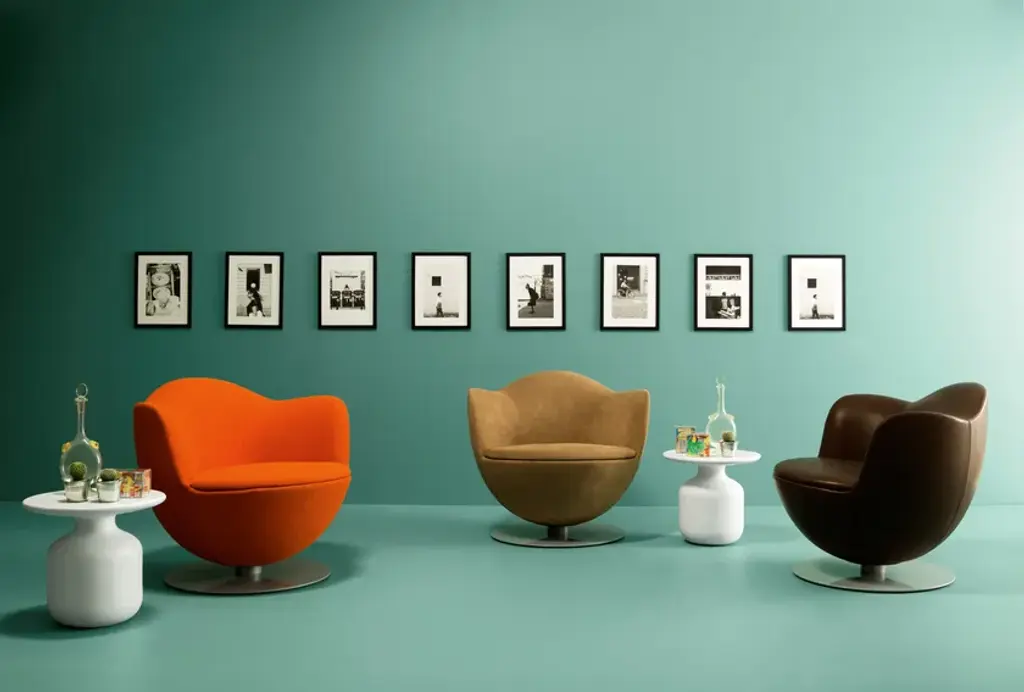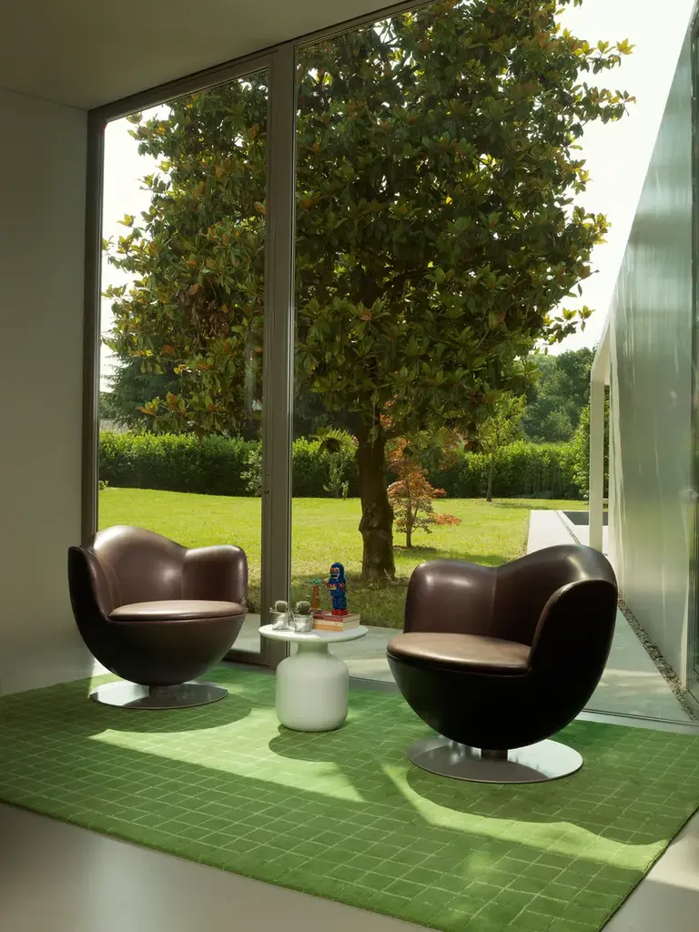Charming at first glance: the Dalia armchair by Marcel Wanders is a floral embrace whose sensual curves capture the soul in poetic suspense. An iconic element of design, with a contemporary appeal and moderate dimensions, this armchair offers optimal comfort, with padding placed above a swivelling base (also available with a return mechanism).Fixed cover in fabrics and leathers of the collection.Structure: seat in glass fibre and resinPadding: polyurethane foamSeat structure: polyurethane foam with poplar plywood frame with elastic beltsSeat cover: fixed, in fabric, leather G, leather Extra G2, customer’s fabric = cat. A - customer’s leather = cat. BBase: steel swivel base with spring return mechanism, steel swivel base without spring return mechanismBase finish: powder varnished natural aluminium colour/ OC4 RAL 9005Feet: felt padsNotes- Removable cushion for base adjustment- Free fabric and leather matching for seat and backrest not availableGreenguardDalia has been certified with Greenguard Gold