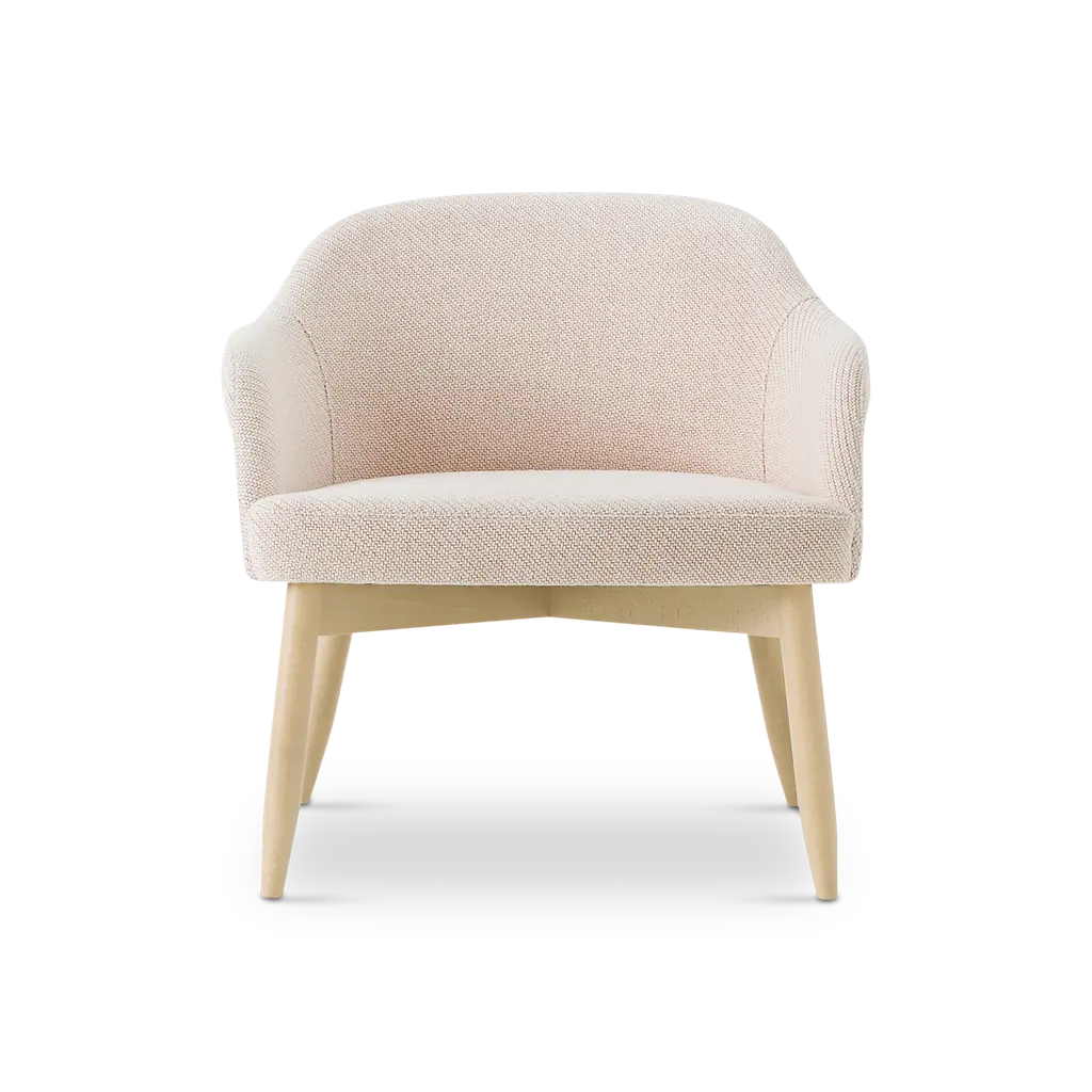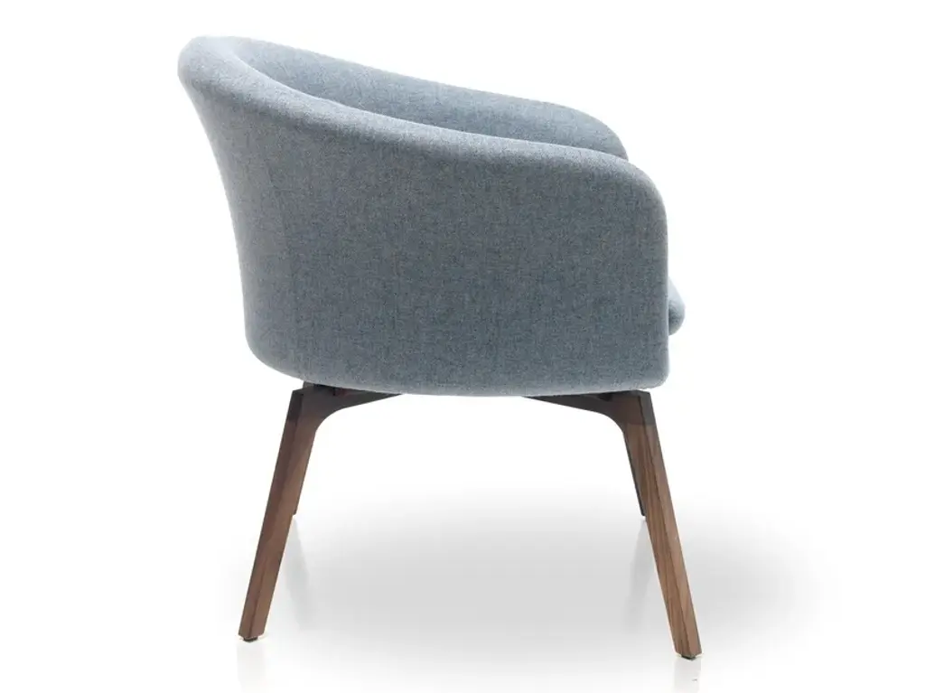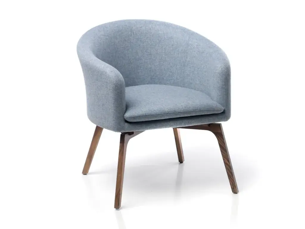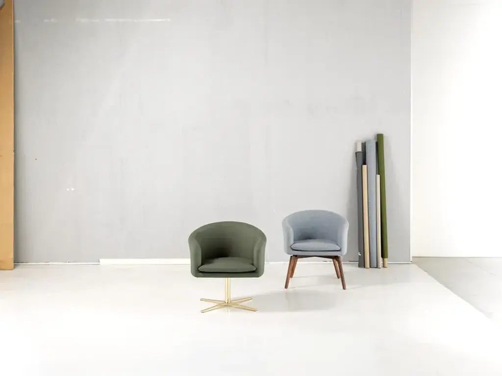 DAPHNEis a fabric armchair with wooden legs. Daphne is an upholstered easy chair, characterized by a style of minimal curves, combined with a refined aesthetic, the expression of a strong personality. The pure elegance of design meets absolute comfort, aesthetically matched with simple and harmonious lines. The base is available in steel 4-spoke version or with 4 legs in in solid walnut canaletto or olive ash. It's possibile to have a swivel model of the easy chair.