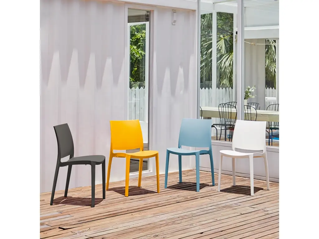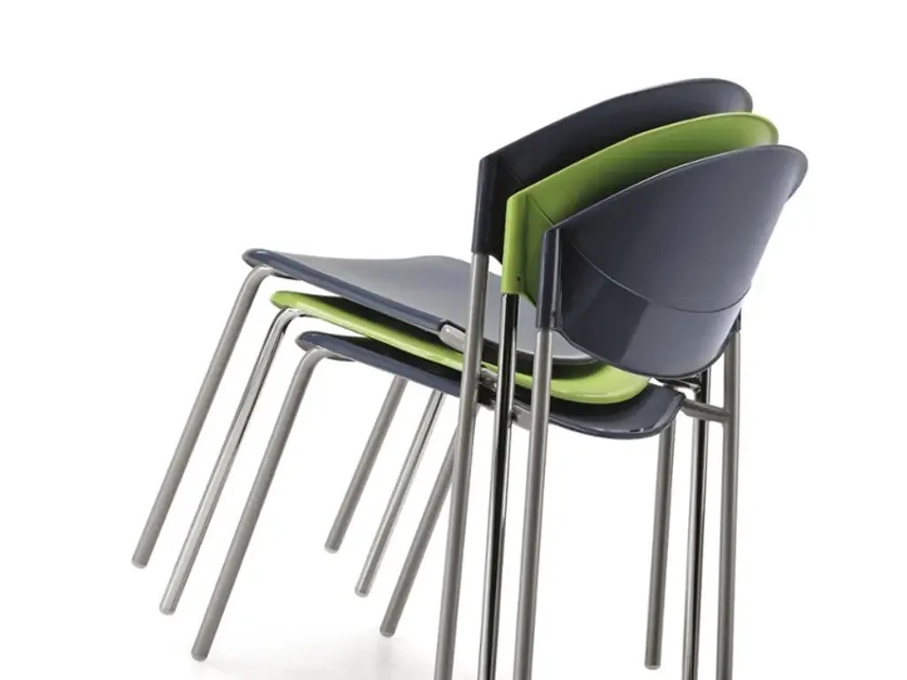 Delfi 083 - Stackable polypropylene chair.Delfi - Stacking chairs with seat and back copolymer available in various colors.Sled or 4 legs metal base with or without arms.Available version with anti-panic writing tablet.Swivel version is also available.Ideal for: conference rooms, clinics, hospitals, schools, cafes and bars.Optional: Front panel padded and upholstered seat or seat and back, connecting ganging, left tablet, big size tablet for PC, transport dolly, floor metal bracket alignment.
