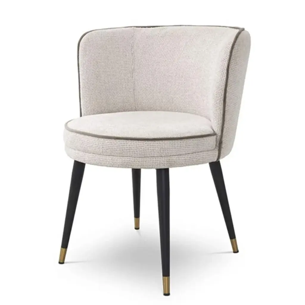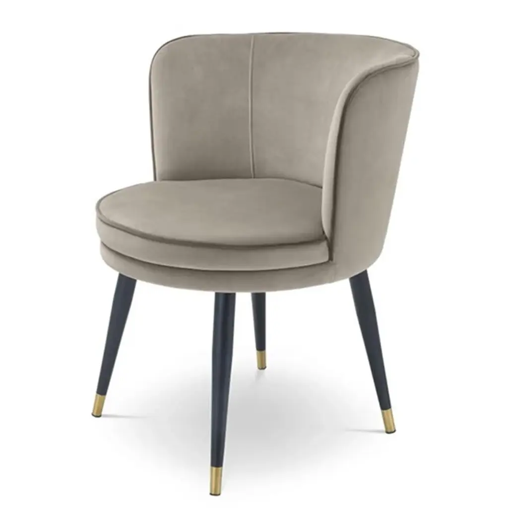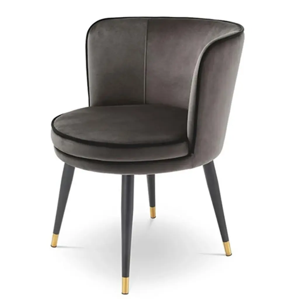 Be on trend with the beautiful Delta Dining Chair. This gorgeous retro chair features black tapered legs with gold caps and a swivel seat that is upholstered in Pumpkin Orange velvet. With its Mid-Century Modern appeal this dining chair will add vintage charm to your dining room or kitchen. Available with other color fabrics: Dark Blue Velvet, Greige Velvet, Grey Velvet and Off White Lyssa fabric.