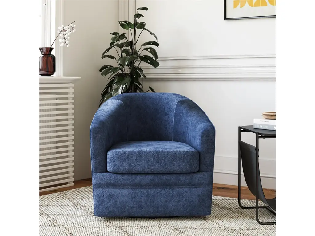 Some people sure love curves, and so do we! Embracing fluid design and a curvaceous aesthetic, the DHP Remily Swivel Accent Chair gives you a trendy curved back and a space-saving shape for a rounded look. The upholstered swivel chair with arms comes covered in smooth textured fabric, adding comfortable modern chair style to your small space. The ultimate small accent chair for living room leisure, our compact armchair has 360-degree swivel function, letting you move left to right and front to back without skipping a beat or missing out on one ounce of comfort. The removeable seat cushion, padded perfectly with high-density foam, and spot-cleanable material help boost the barrel chair's low maintenance profile. And the lounge chair boasts a strong and supportive structure with its metal base, wood frame, and steel spring backing. Reserve only 15 minutes for assembly and enjoy your lounge chair right away from the office to the bedroom.