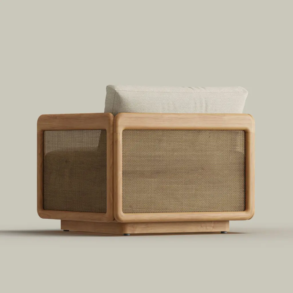 The Dock Swivel Lounge Chair redefines outdoor comfort with its effortless swivel motion, allowing for easy movement and seamless conversation. Distinctive woven panels are set within a solid teak frame, creating a striking contrast of texture and warmth. Designed for both style and durability, its bold yet inviting silhouette makes a statement in any outdoor space. Crafted for luxurious relaxation, the Dock Collection offers the perfect balance of modern design and lasting craftsmanship.
