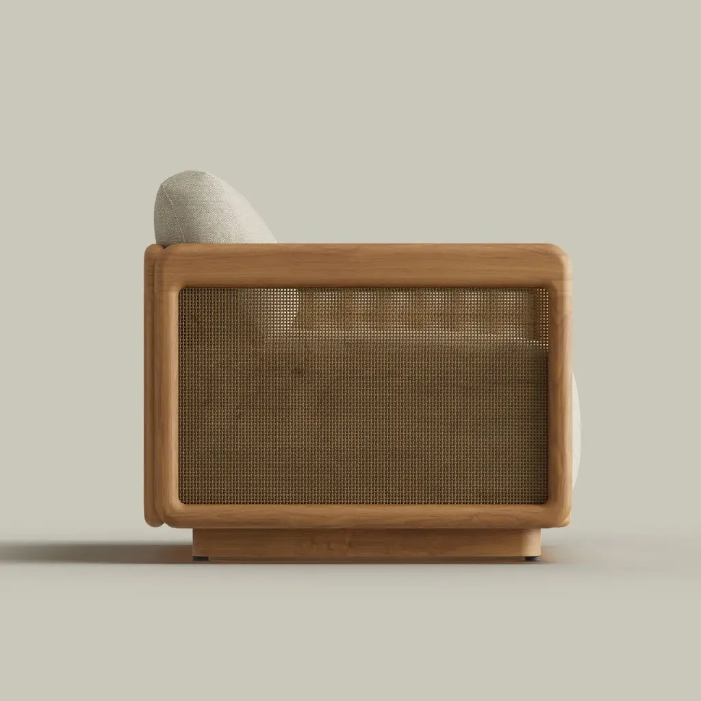 The Dock Swivel Lounge Chair redefines outdoor comfort with its effortless swivel motion, allowing for easy movement and seamless conversation. Distinctive woven panels are set within a solid teak frame, creating a striking contrast of texture and warmth. Designed for both style and durability, its bold yet inviting silhouette makes a statement in any outdoor space. Crafted for luxurious relaxation, the Dock Collection offers the perfect balance of modern design and lasting craftsmanship.
