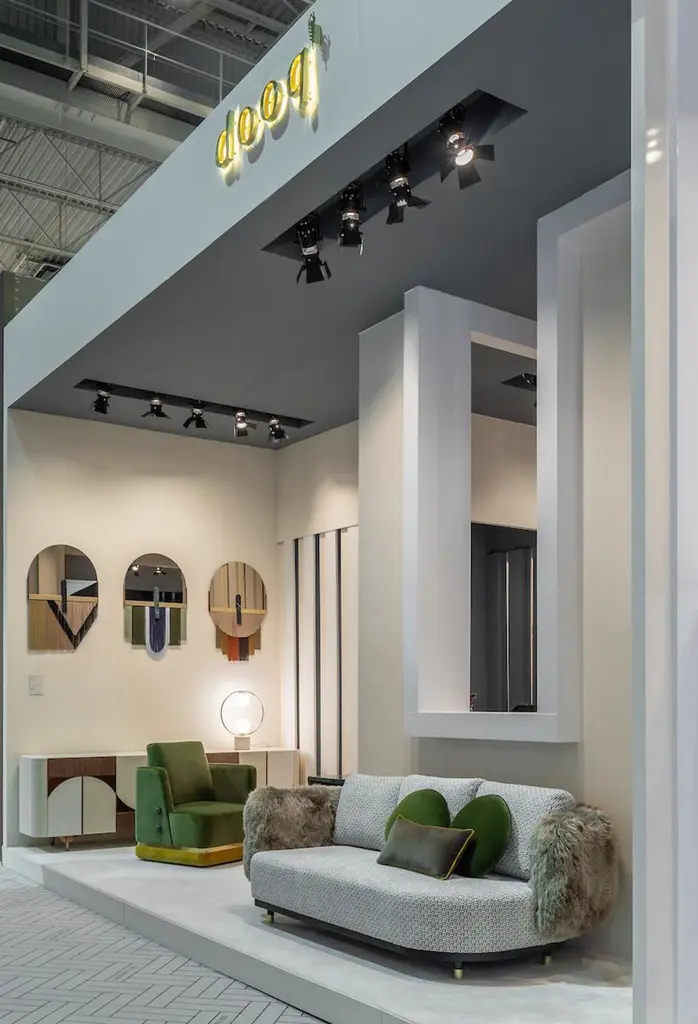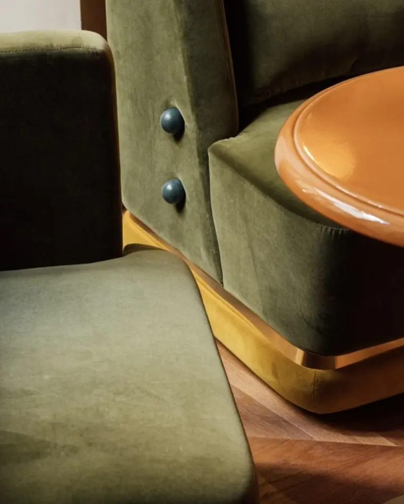 Swivel armchair with soft cotton velvet by Pierre Frey in Kiwi and Dijon color and satin brass detail. New and Made to Order. If you are planning on ordering an upholstery item with COM upholstery, please follow these instructions: - Let us know that you are shipping fabric to us prior to shipping, as we will need you to fill a form;- All fabrics must be shipped to the company DOOQ, LDA, and no other name;- Send us the fabric invoice so we can present it to portuguese customs so the fabric can be released;- Our company must appear on the fabric invoice as "SHIP TO" only, not as "BILL TO" or "SOLD TO"- Our company has the right to refuse acceptance of fabric/leather if the shipment of such material ignores the requirements written above;Solid and concrete like in appearance, Panorama line is an ode to monumental proportions and impacting visual lines impossible to overlook in a voyage amongst Eastern Europe’s architectural legacy. Still the strong lines are attenuated by softly gathered upholstery that will provide you maximum comfort and stability.For sales with delivery address within European territories, VAT will be charged additionally to the stated price.