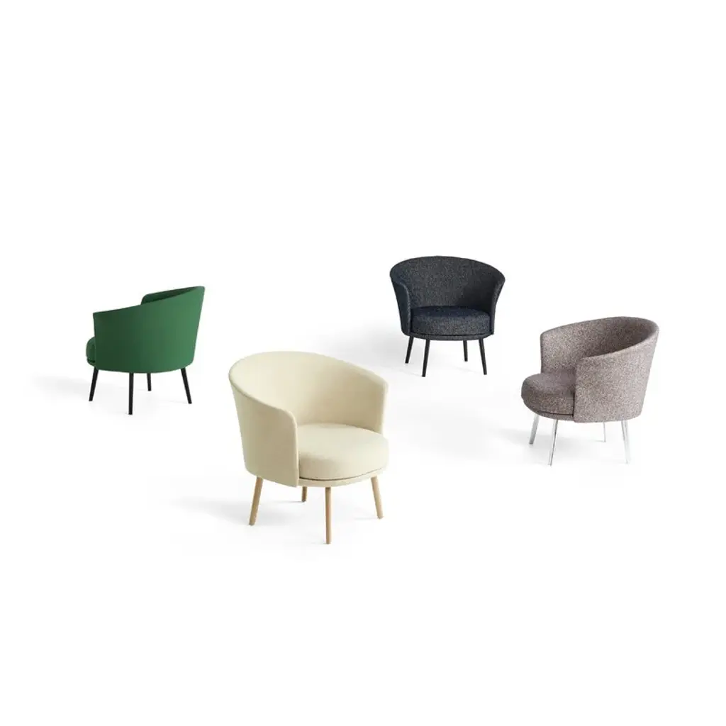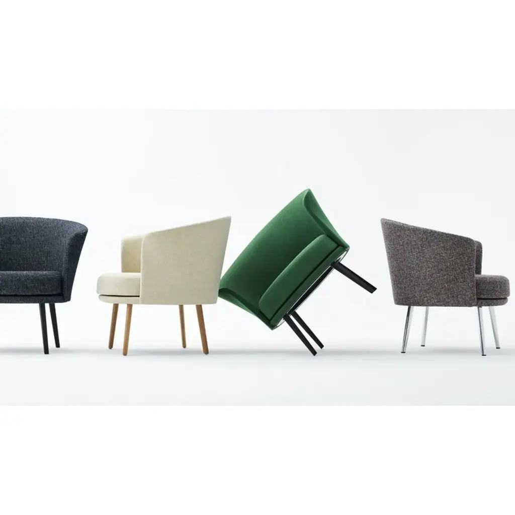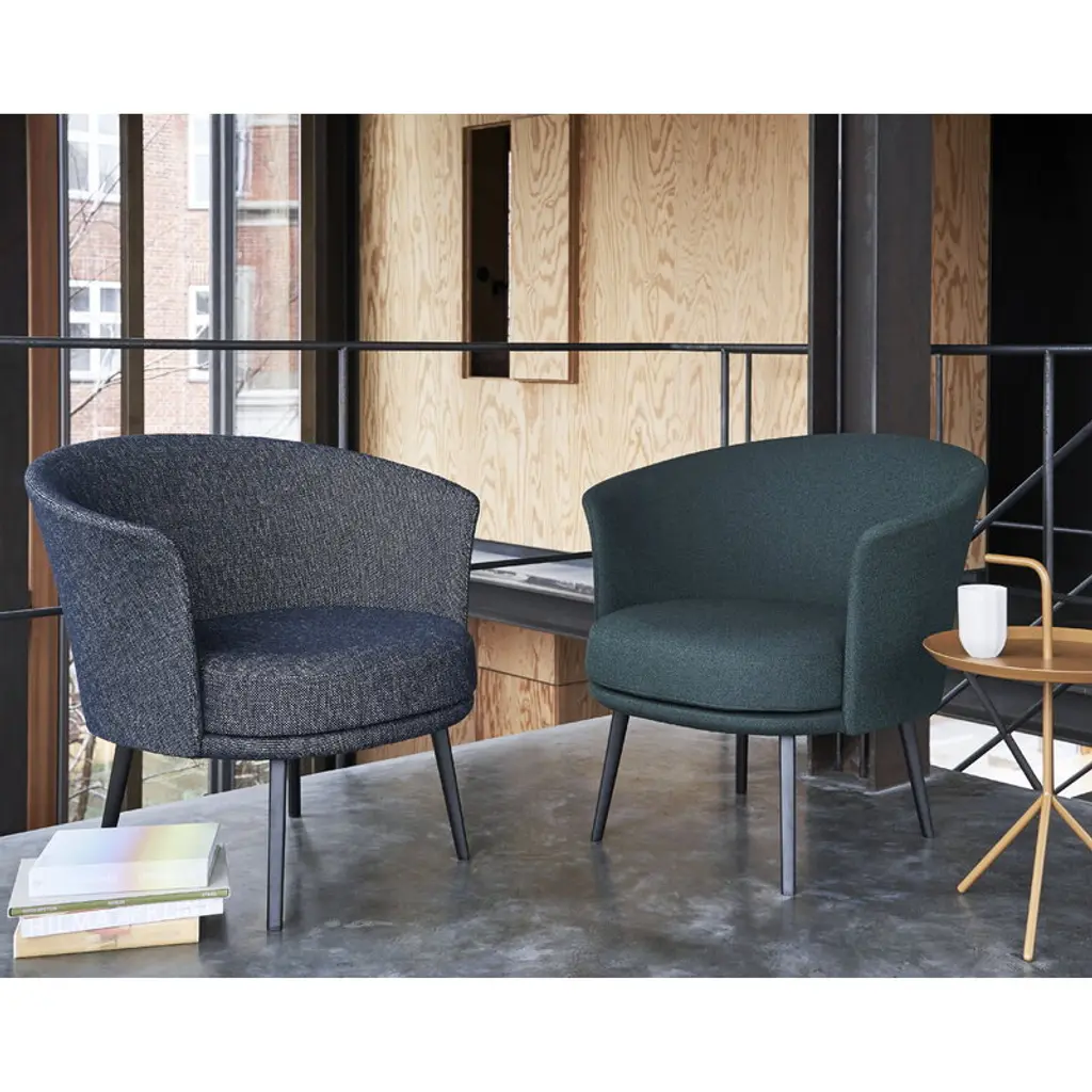 The HAY Dorso lounge chair, designed by GamFratesi, is a combination of relaxed comfortability and flexible functionality. Inspired by the shapes of a human torso in motion, the compact lounge chair charms with soft lines, stylish fabric, playful tones and durable steel legs. The speciality of the Dorso lounge chair lies in its integrated swivel mechanism: the seat rotates 360 degrees, making the chair adaptable for any contemporary living room, reading corner, office or public environment.