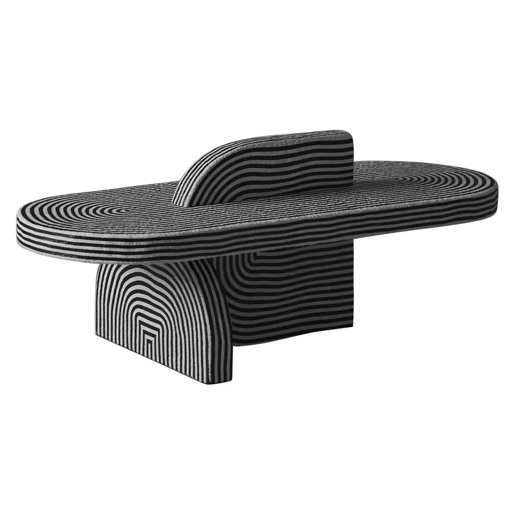 The key piece of a Drum range, that also includes a small armchair, poufs in two sizes and a table, is made of multi-density polyurethane foam for maximum comfort without compromising its strong visual impact.The upholstery proposed by Mac Stopa and Cappellini for the armchair, two poufs and table include a stretch fabric with an 3D optical pattern: a motif derived from a geometrical tessellate pattern. The Drum armchair is also available in a selection of fabrics and leathers from the collection.The small Drum armchair, upholstered in a selection of leathers and fabrics from the collection, sits atop a fixed, swivelling or return swivel base.The unconventional appeal of the Drum armchair is further enhanced when paired with the side table, available in Carrara marble or black or white plastic laminate.Armchair structure: foamed polyurethane with metallic insert and elastic beltsPouf and side table structure: rigid composite polyurethane with poplar plywood insertsLittle pouf structure: polyurethane foam with polystyrene insert, poplar plywood and MDF Armchair, pouf, little pouf and side table base: medium-density wooden fiber conglomerate panelSmall armchair base: medium-density wooden fiber conglomerate panel base: fixed, swivel or swivel with return mechanismBase finish: matt lacquer 04 blackPouf, little pouf and side table padding: polyurethane foamArmchair, pouf, little pouf and side table upholstery: fixed mono-colour in bielastic fabric and bielastic optical with 3D graphic fixed mono-colour or bicolor in leather G or in a selection of collection fabrics: Ecopelle, Hallingdal 2, Panno, Hero, Master fixed with exterior in black leather G and interior in bielastic optical with 3D graphicsSmall armchair upholstery: fixed mono-colour in bielastic color fabric, in leather G or in aselection of collection fabrics: Ecopelle, Hallingdal 2, Panno, Hero, MasterSide table surfaces: white Carrara marble, plastic laminate in the colours: white, blackFeet: felt pads