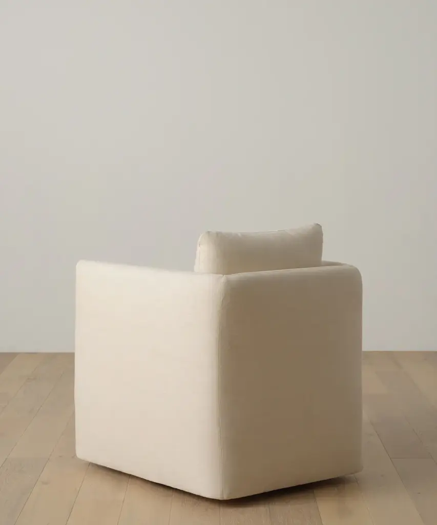 Dume Chair Beige Hemp Plush accent chair handmade in Los Angeles and upholstered of 100% sustainable Hemp from Italy. This ultra-luxurious fabric features a super-soft hand and elevated feel—plus, the textile is treated using a special technique that imparts a vintage look. Pillows are filled with Trillium© fiber, a premium hypoallergenic alternative to down that’s equally as luxe without the upkeep or extra fluffing. Due to the unique nature of the hemp dyeing process, pieces purchased at different times may vary slightly in shade. Features a thick layer of firm foam fill and vertical no-sag springs made of high-tensile steel wire for longevity and timeless comfort. Slipcover and cushions feature a double top-stitch for added seam strength. Alder wood frame is kiln-dried to stand the test of time. Available in standard and swivel variations. For a free fabric swatch, please click here. For furniture purchases, please refer to our furniture inspection policy here, and for help styling this piece in your space, contact [email protected] for a complimentary consultation.CA Residents: Prop 65 Information