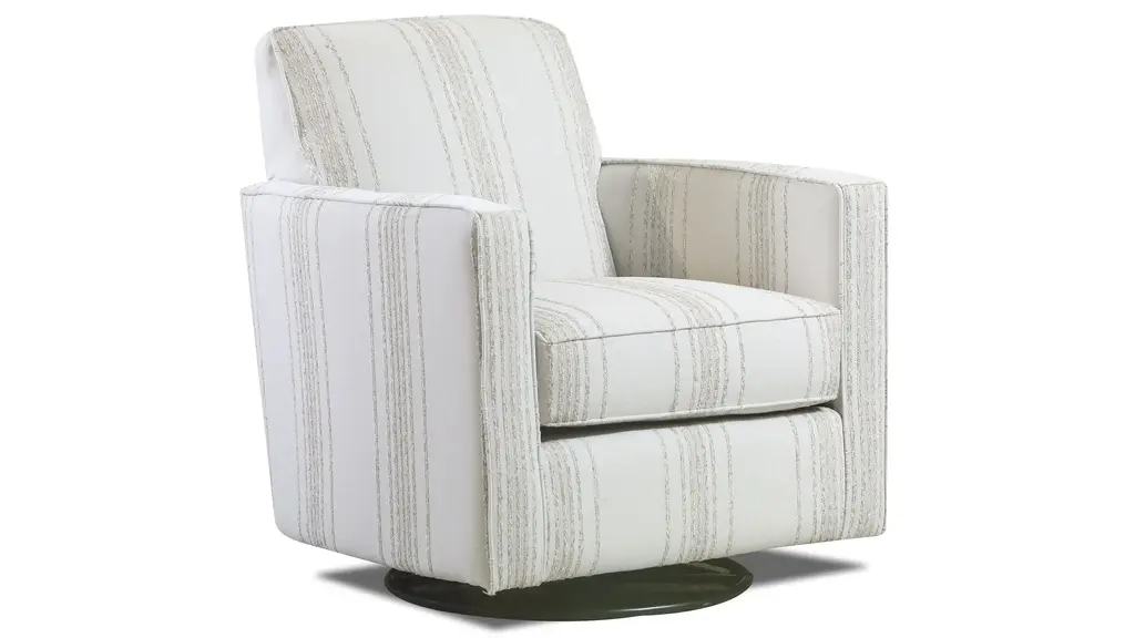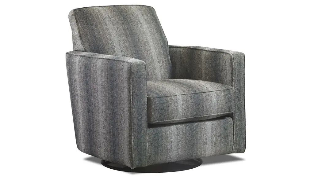 The lively geometric pattern of the Durango Swivel Chair coordinates with the interesting array of accent pillows on the Durango sectional for a designer look with an undeniable spirit of ease. Sloped arms, a tight seat back and a swivel base make this a fun occasional chair and conversation piece for any room.