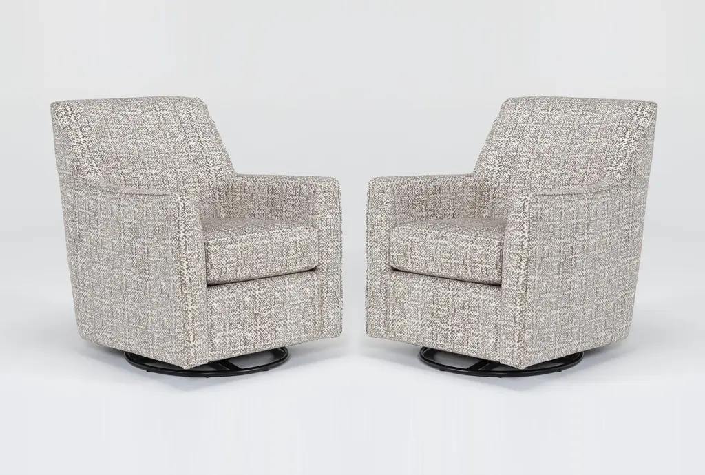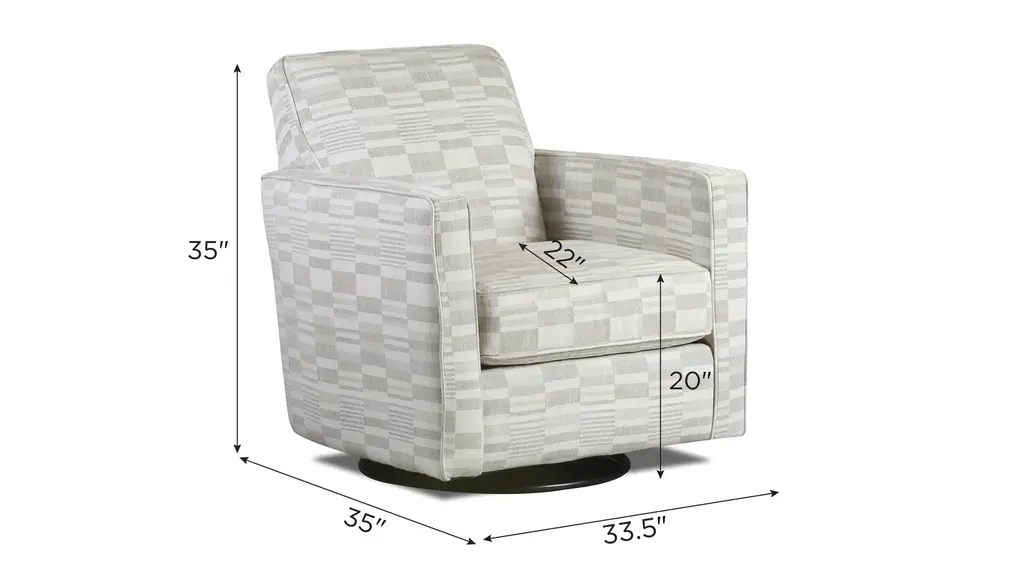 The lively geometric pattern of the Durango Swivel Chair coordinates with the interesting array of accent pillows on the Durango sectional for a designer look with an undeniable spirit of ease. Sloped arms, a tight seat back and a swivel base make this a fun occasional chair and conversation piece for any room.