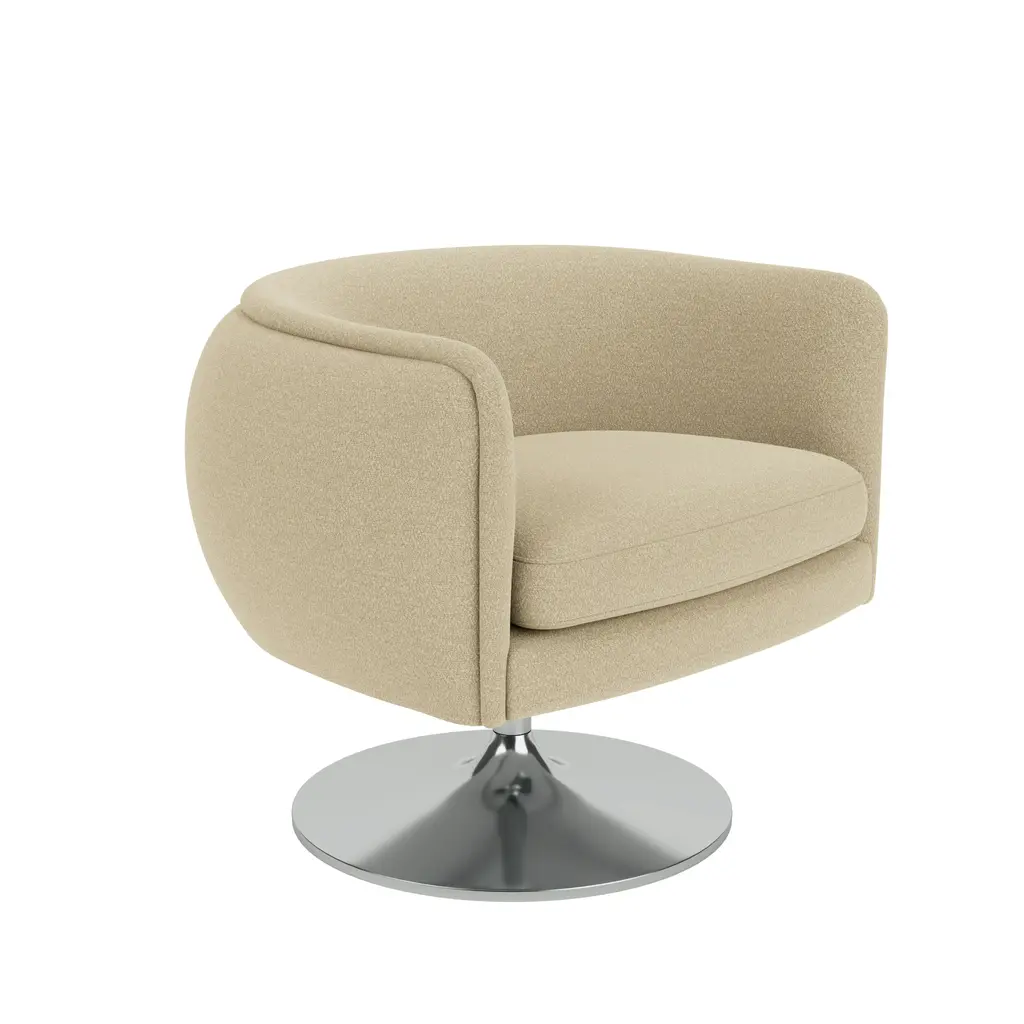 The D’Urso Swivel Chair strikes a playful balance between formality and whimsy, offering a modern twist on the classic cocktail lounge chair.