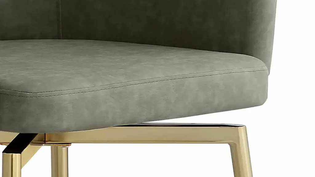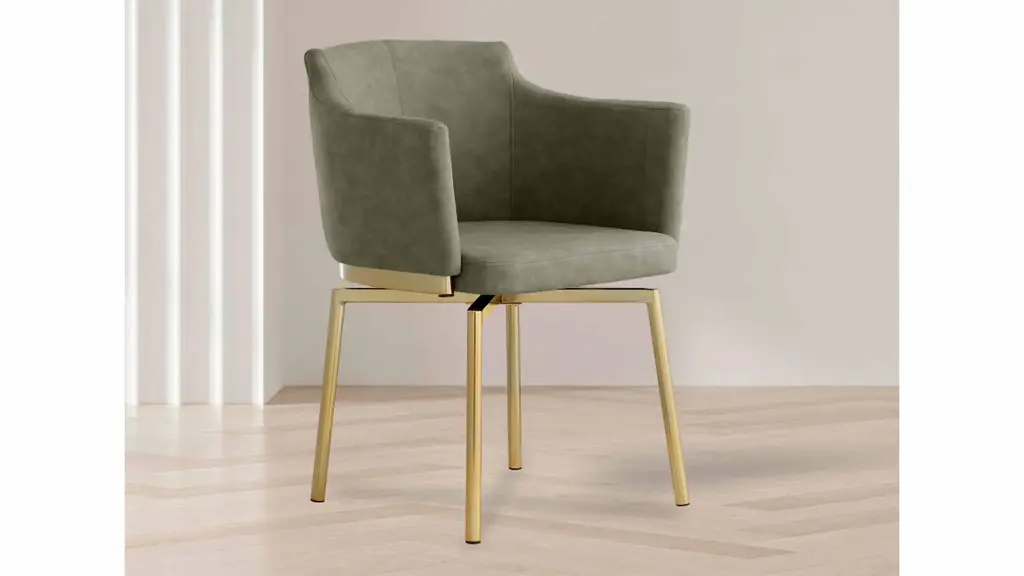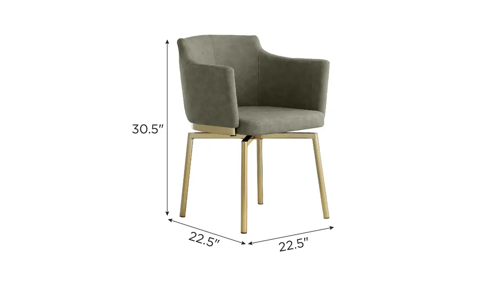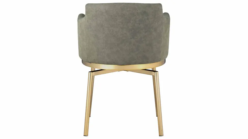 The Dusty Armchair - Set of 2 features faux leather upholstery with brushed gold legs. Update your spaces with this club-style bucket memory swivel side chair, which features faux leather upholstery with gold plated steel legs.