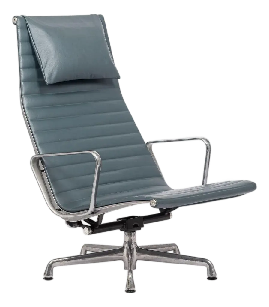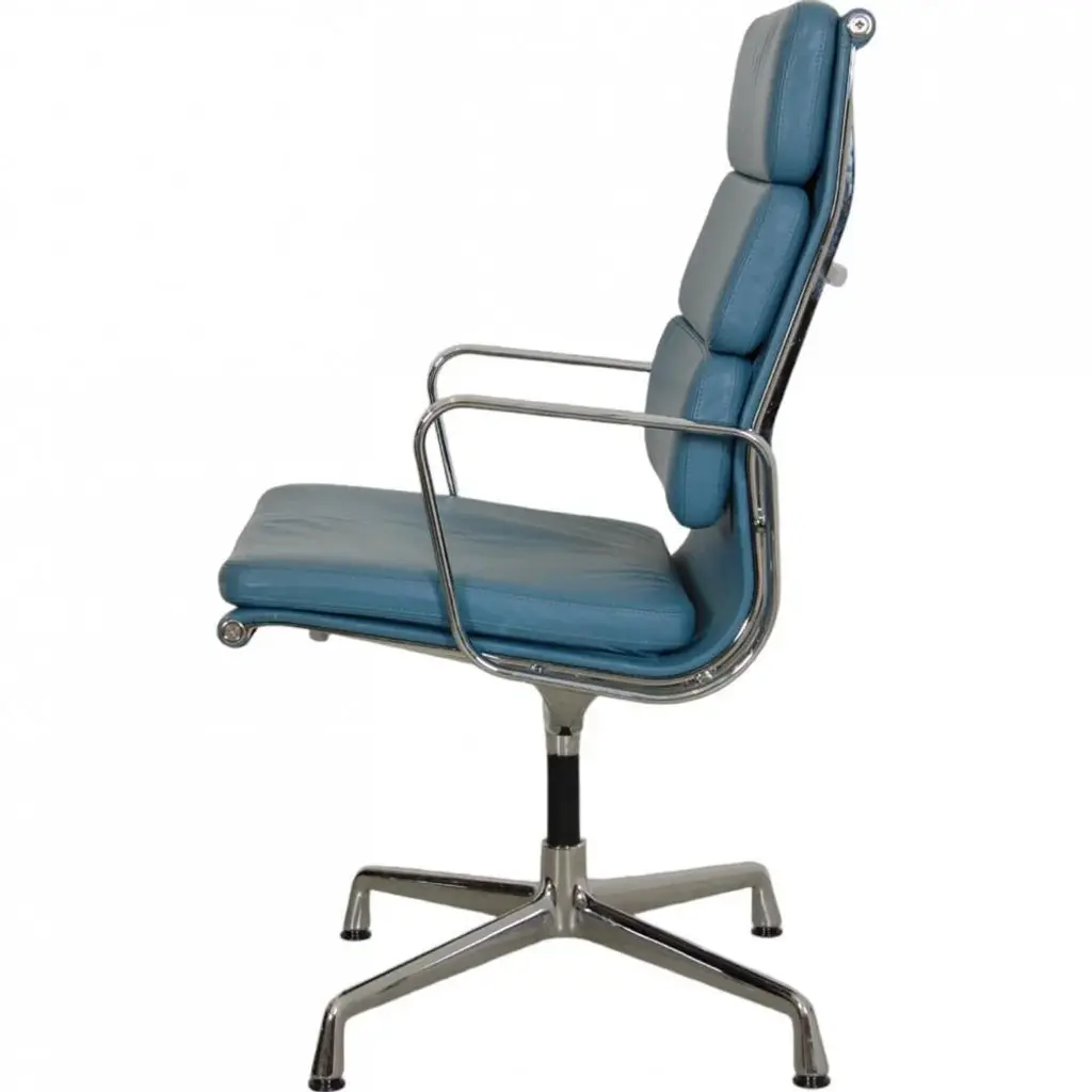 Ea-209 Chair In Blue Leather By Charles Eames, 2000s