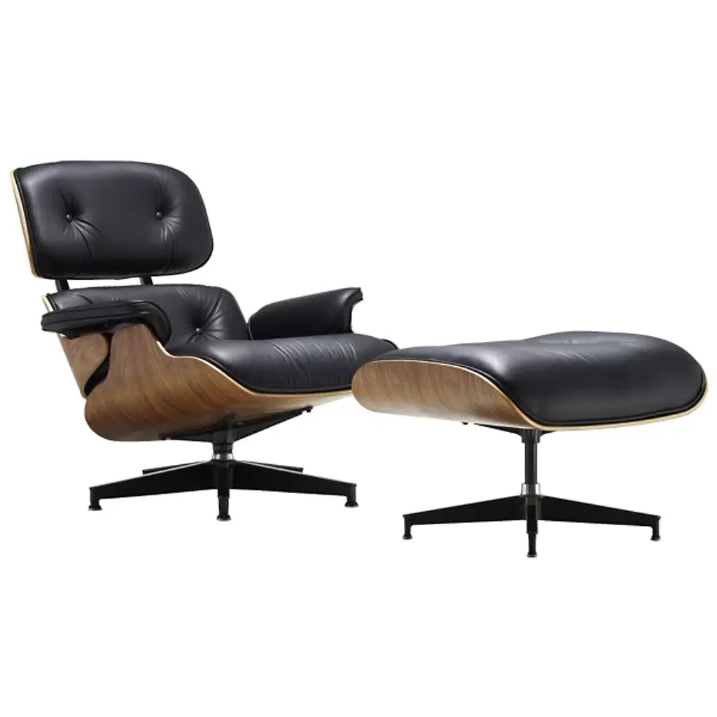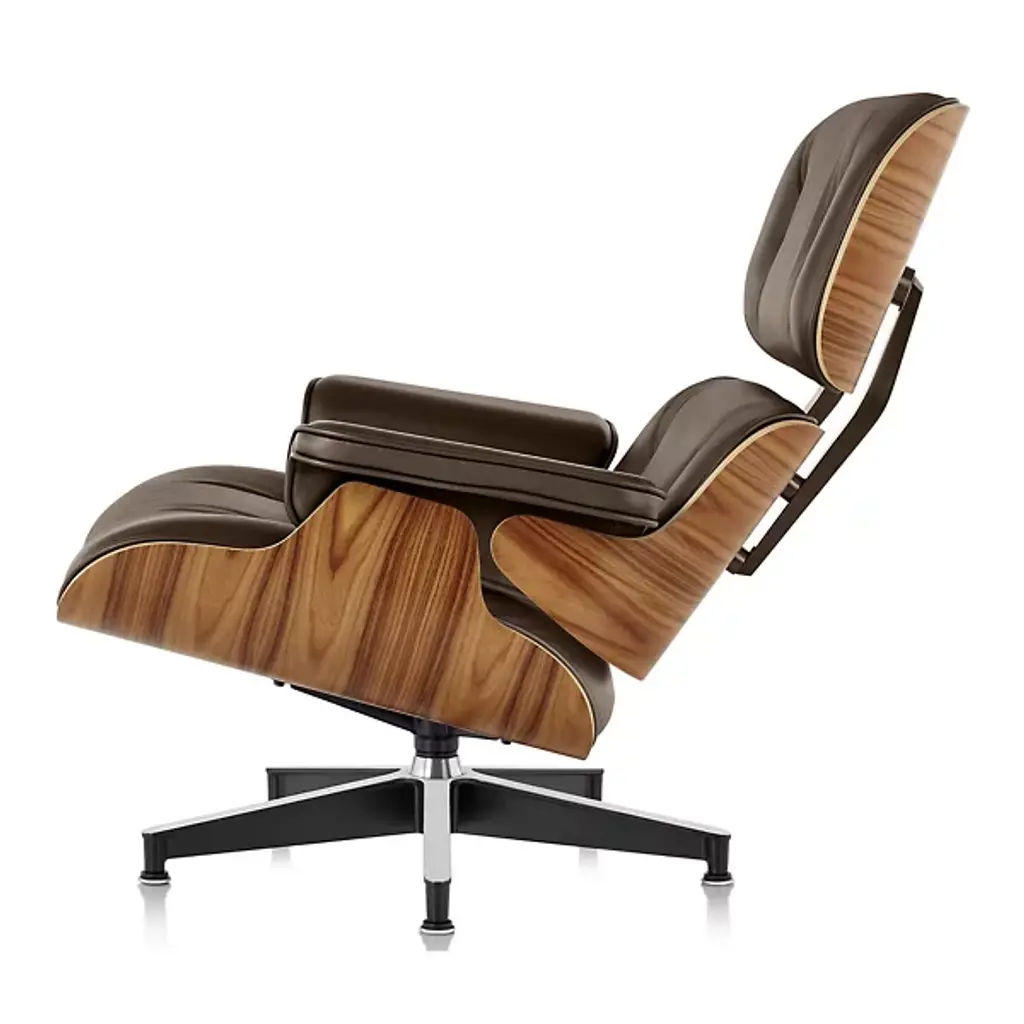 There is nothing quite like an Eames. The legendary Eames Lounge Chair by Herman Miller was originally designed by the famous Charles and Ray Eames in 1956 and their design immediately became one of the icons of Mid-Century furniture. Its 7-ply veneer shell is available in a variety of modern finishes while its cushions are individually upholstered and replaceable. The Eames base is crafted with die-cast aluminum with shock mounts made of resilient natural rubber. Swivel to the perfect position with its swivel functionality and adjustable stainless steel glides.