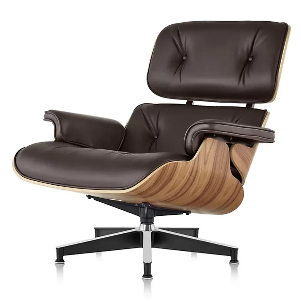 There is nothing quite like an Eames. The legendary Eames Lounge Chair by Herman Miller was originally designed by the famous Charles and Ray Eames in 1956 and their design immediately became one of the icons of Mid-Century furniture. Its 7-ply veneer shell is available in a variety of modern finishes while its cushions are individually upholstered and replaceable. The Eames base is crafted with die-cast aluminum with shock mounts made of resilient natural rubber. Swivel to the perfect position with its swivel functionality and adjustable stainless steel glides.