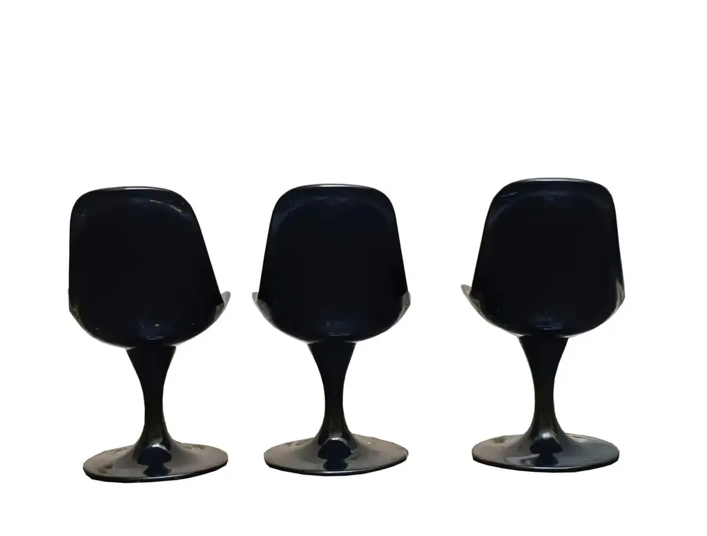 Eero Saarinen Style Set Of 3 Black Dining Chairs Tulip Model, Italy 1970s
